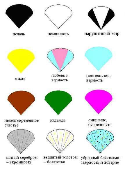 «Скромность, неуверенность» - веер, раскрытый менее чем на четверть.