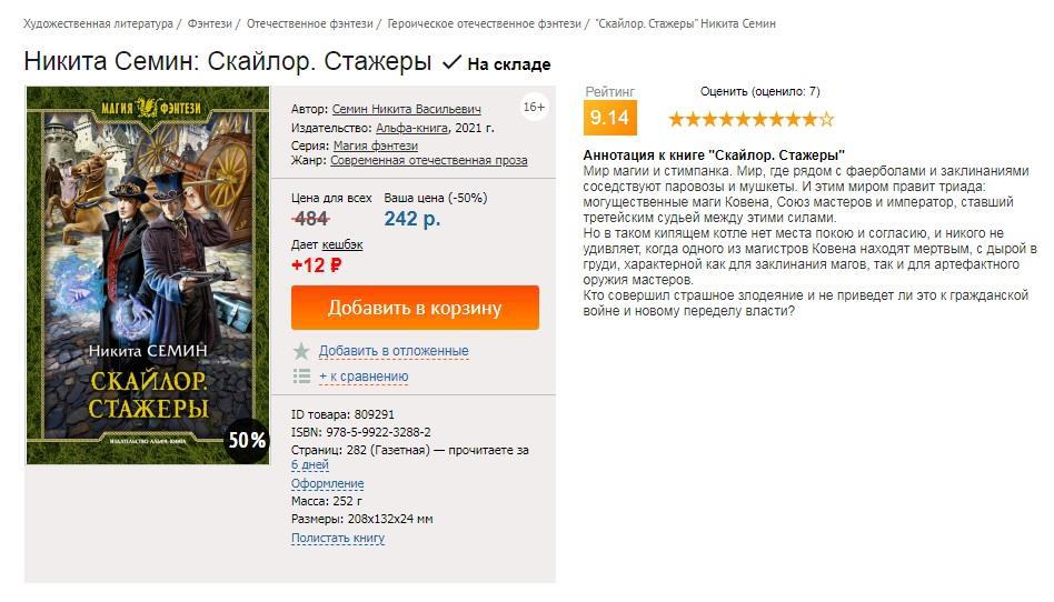 Заглянул тут на Лабиринт, посмотреть, что твориться с моей книгой "Скайлор. Стажеры" и увидел, что там на нее скидка, аж 50%!!! Так что если кому-то очень понравилась книга и хочется поставить ее "на полку" то сейчас самое время - цена в 242 рубля не каждый день бывает! Просто нажмите на картинку, чтобы убедиться в этом)