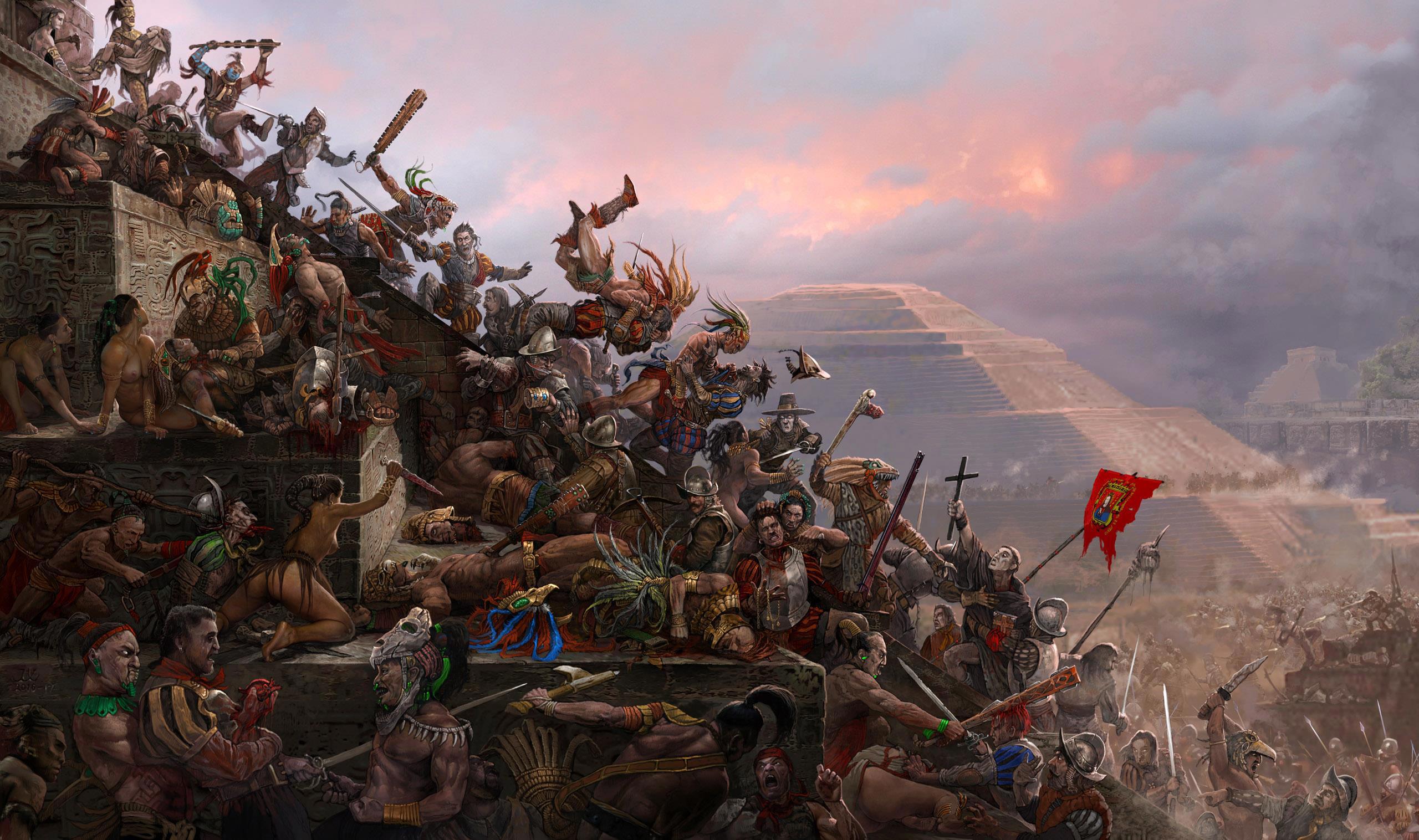 Причем такой, что государство - это способ выживания населения определенной страны. Любой разгром государства очень больно бьет по стране и населению. Обязательно получается местный постапокалипсис. Вот к примеру картина соверменного художника - штурм Теночтитлана. Казалось бы - когда это было, уже и забыть можно, но вот мексиканцы об этом переживают и нынче.