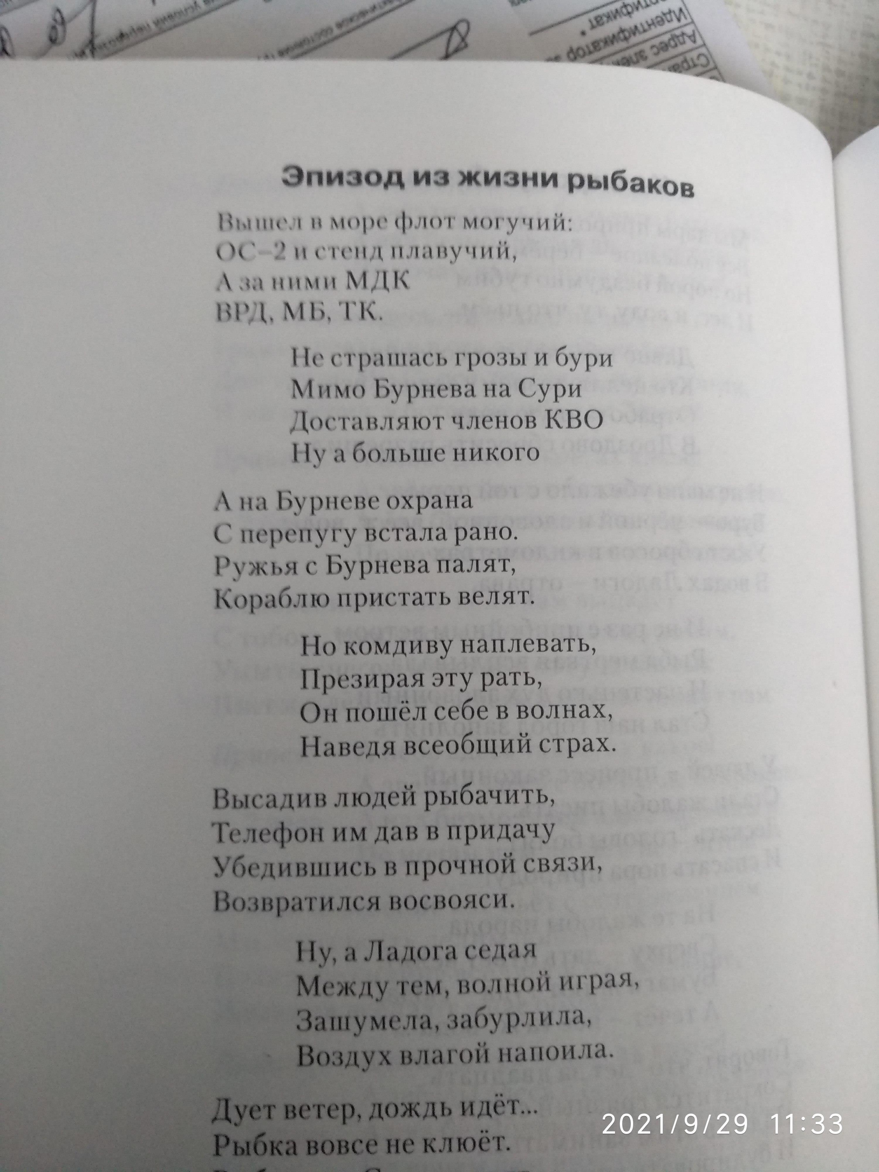 Сам Данилов представил ворованное у ветерана Отечественной войны капитана 2 ранга Геннадия Избышева стихотворение "Эпизод из жизни рыбаков". Данилов стихотворение Избышева переделал и представил на конкурс под названием "Вышел в море кран плавучий".