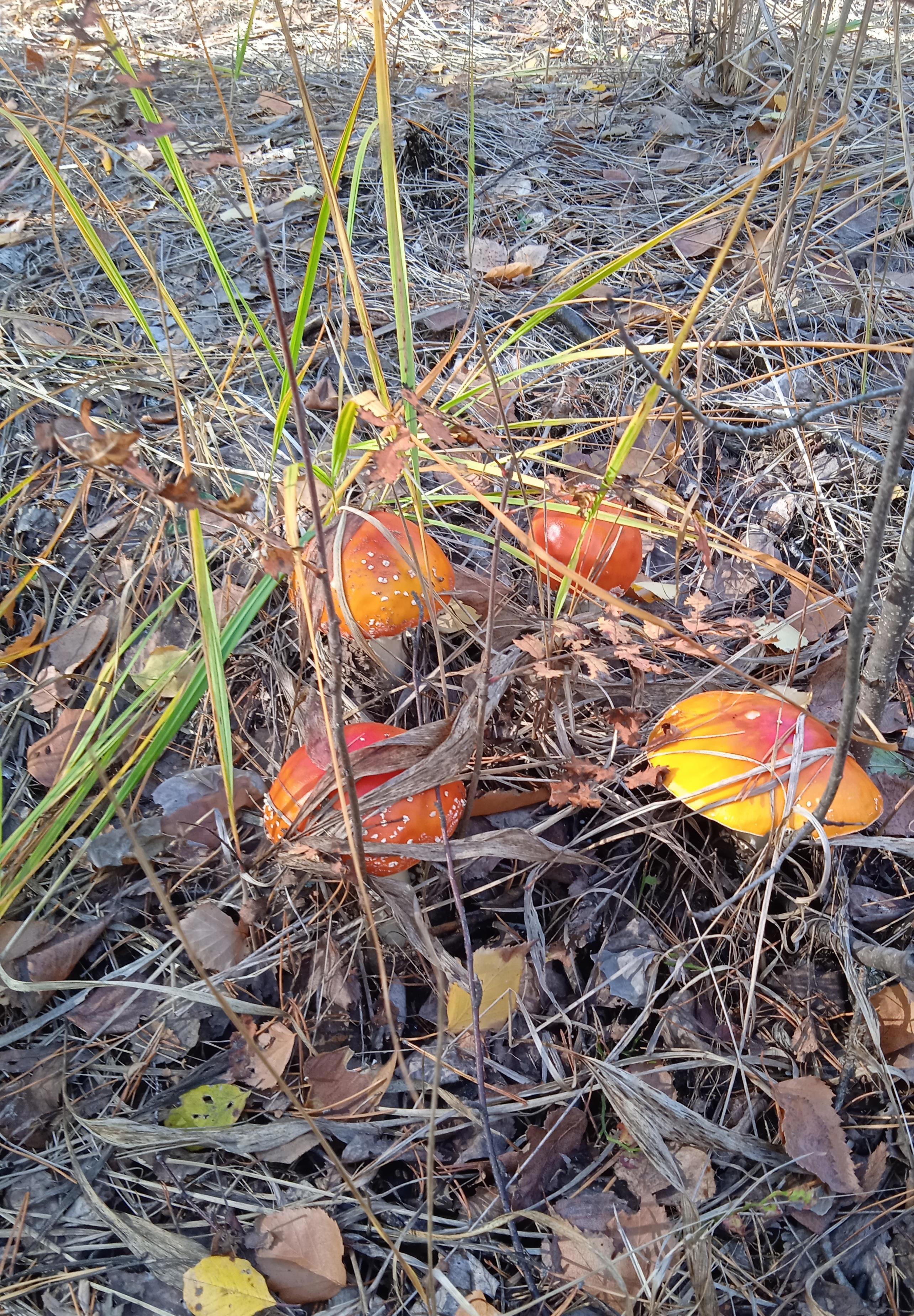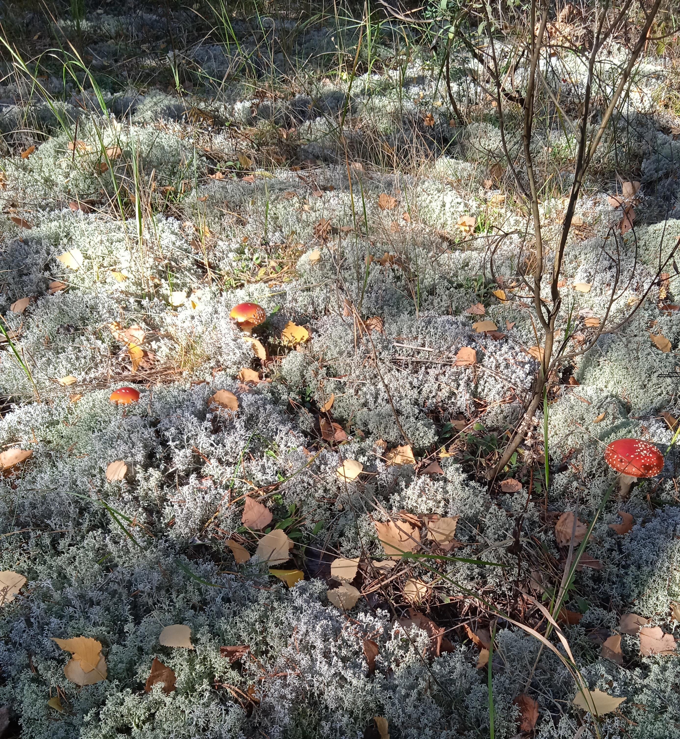 Особенно зловеще и ярко мухоморы смотря на седом мху: