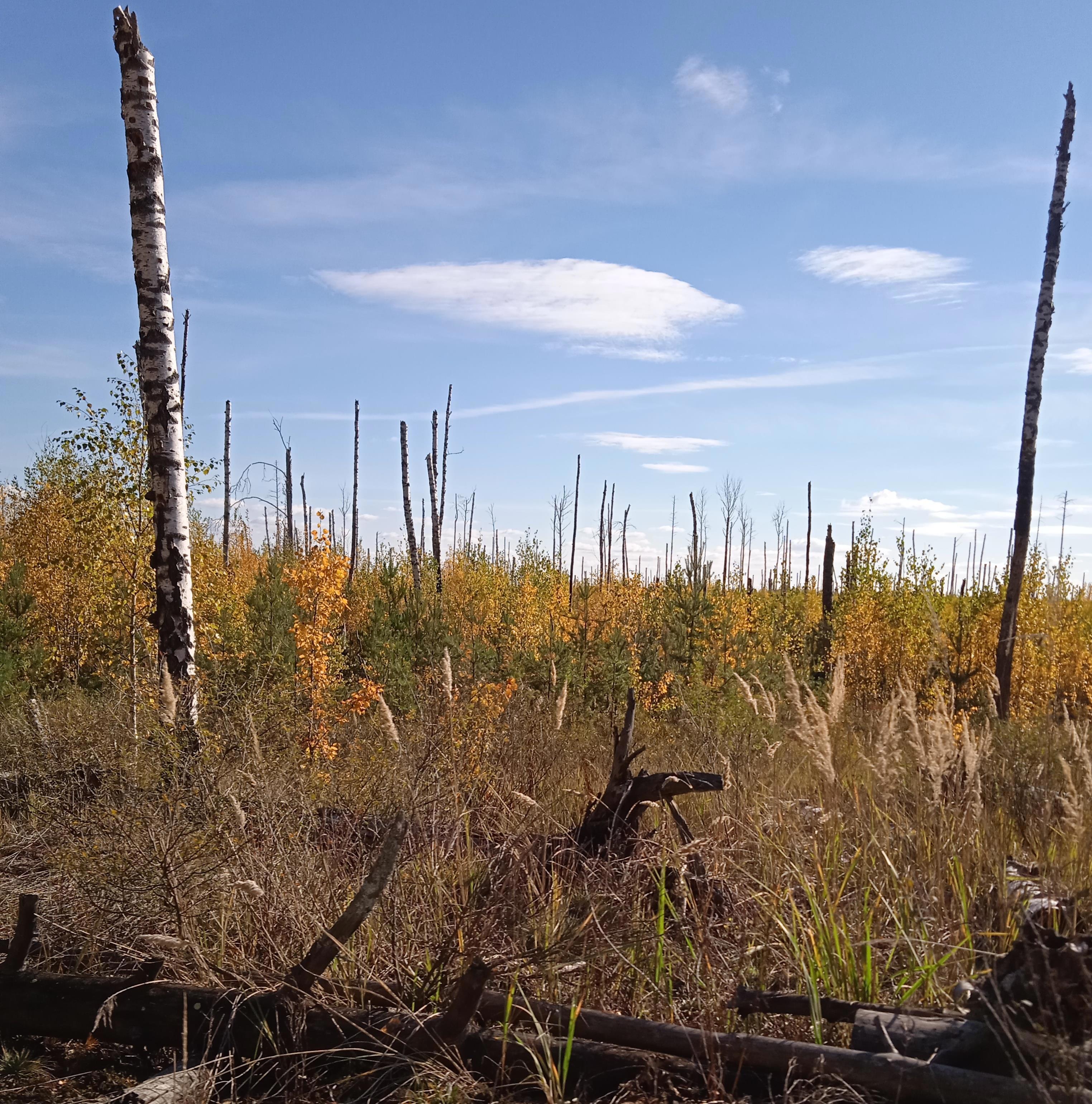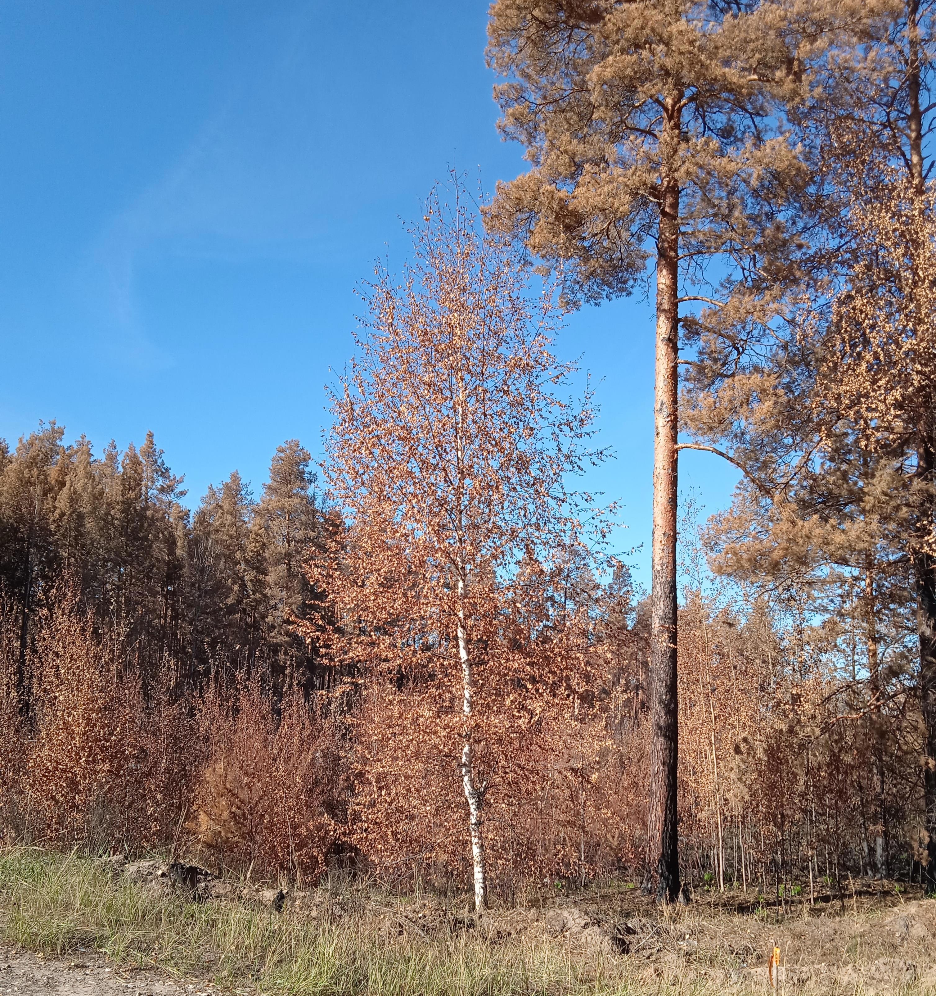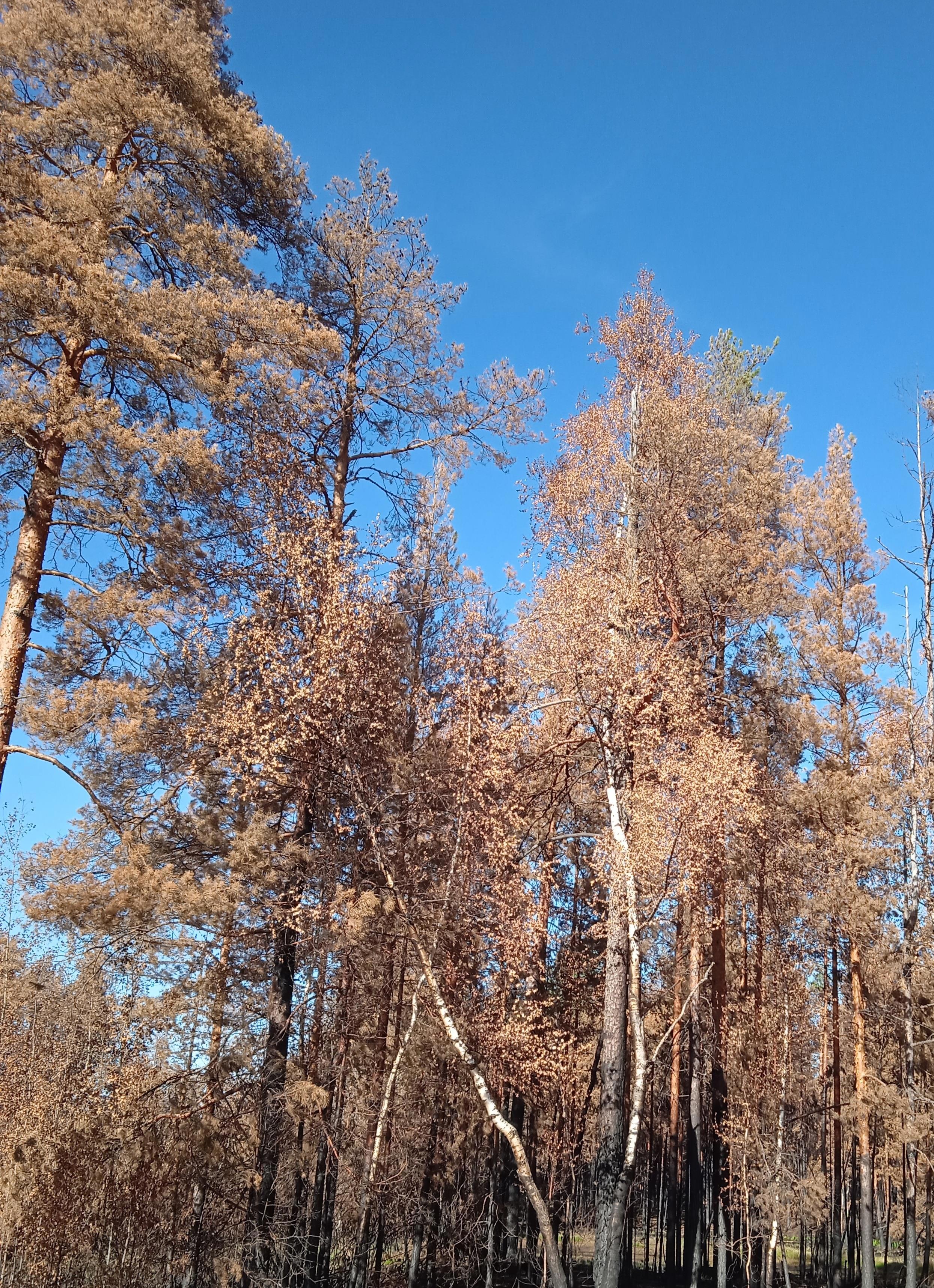 А здесь не осень раскрасила деревья: летний лесной пожар этого года постарался: