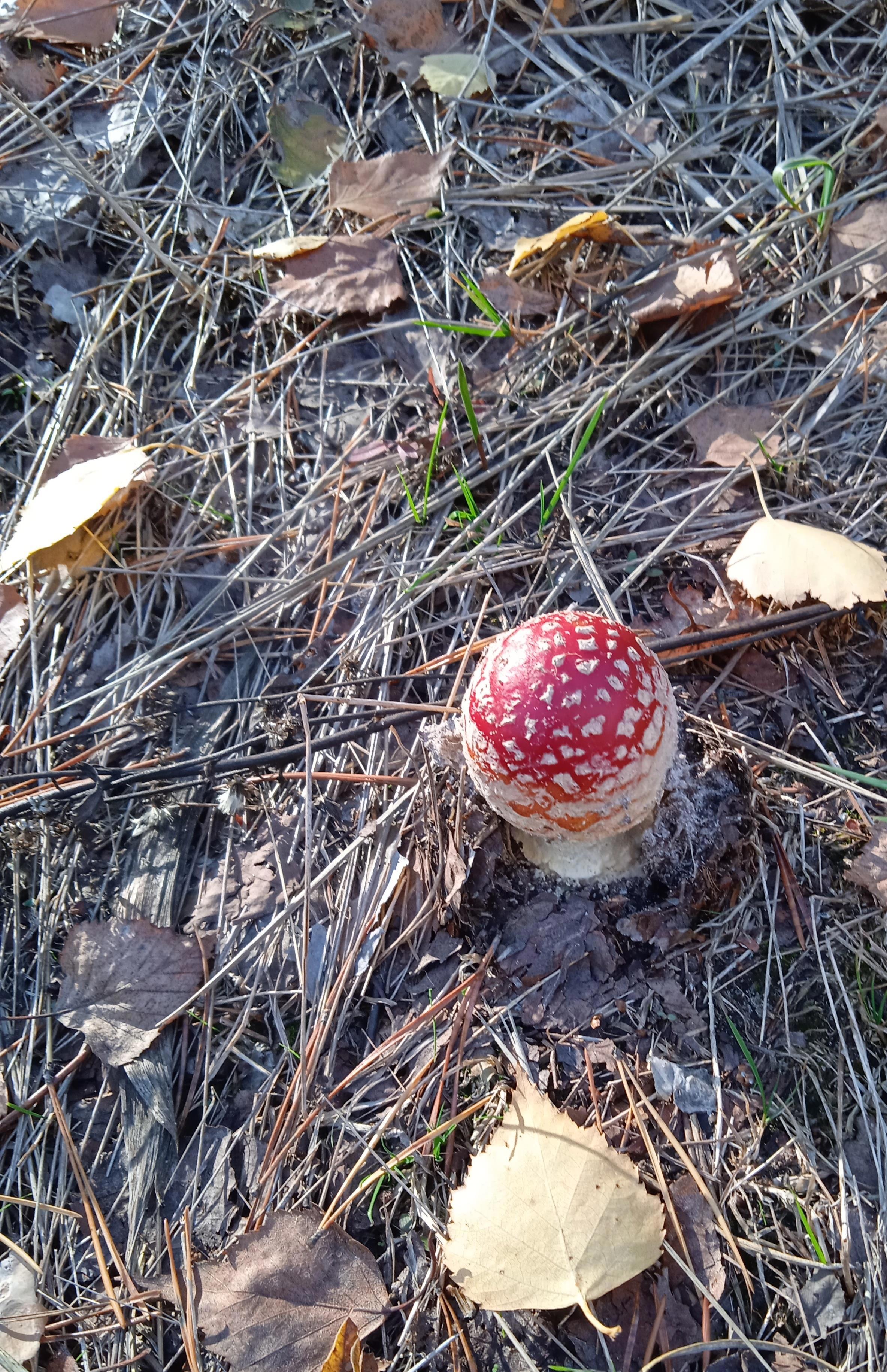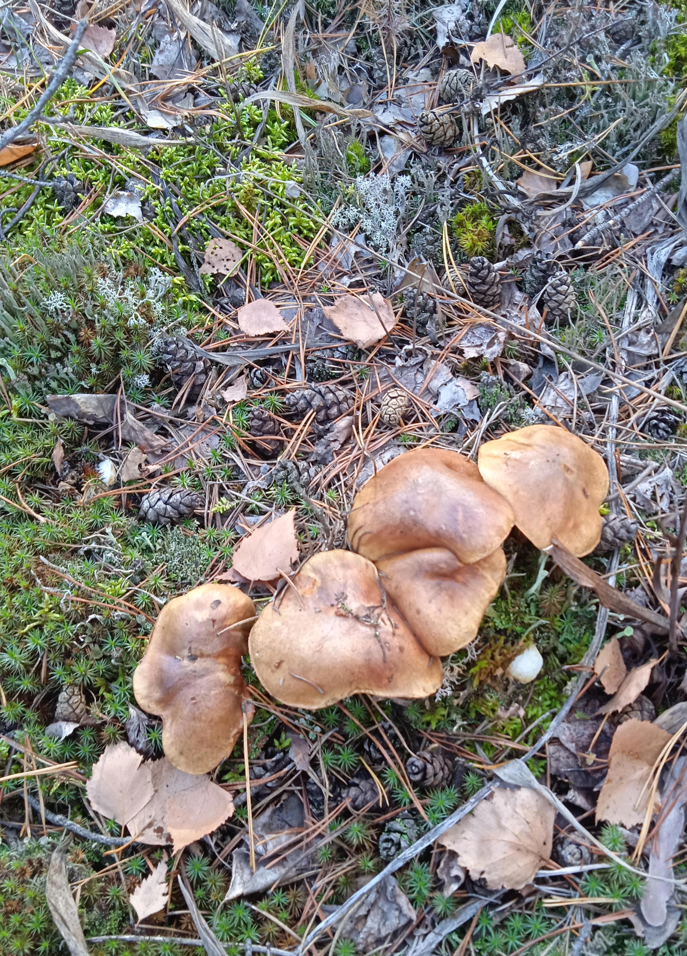 С большим трудом, но съедобные грибы мы все же нашли. Это, в основном, были маслята: