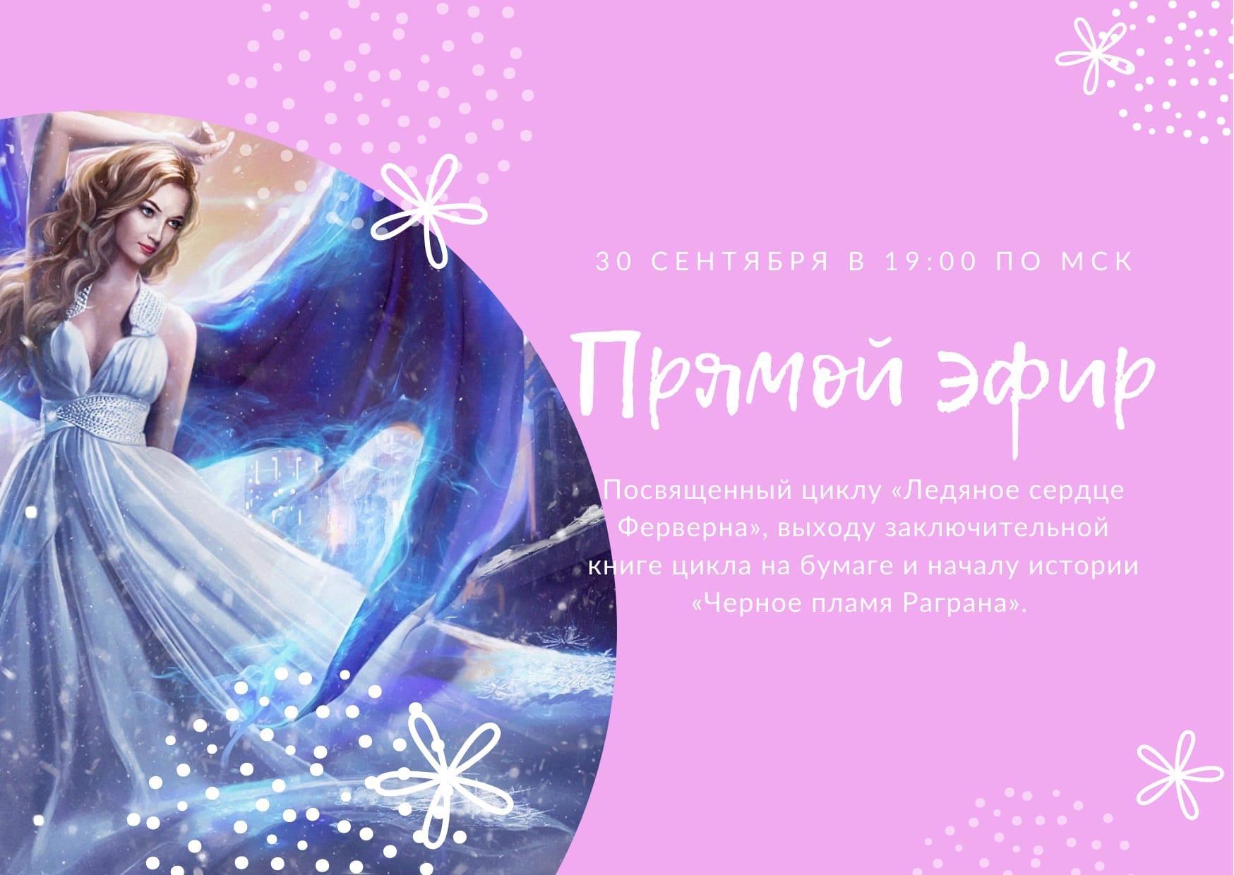 Сегодня состоится прямой эфир, посвященный циклу "Ледяное сердце Ферверна" и выходу заключительной книги цикла на бумаге.