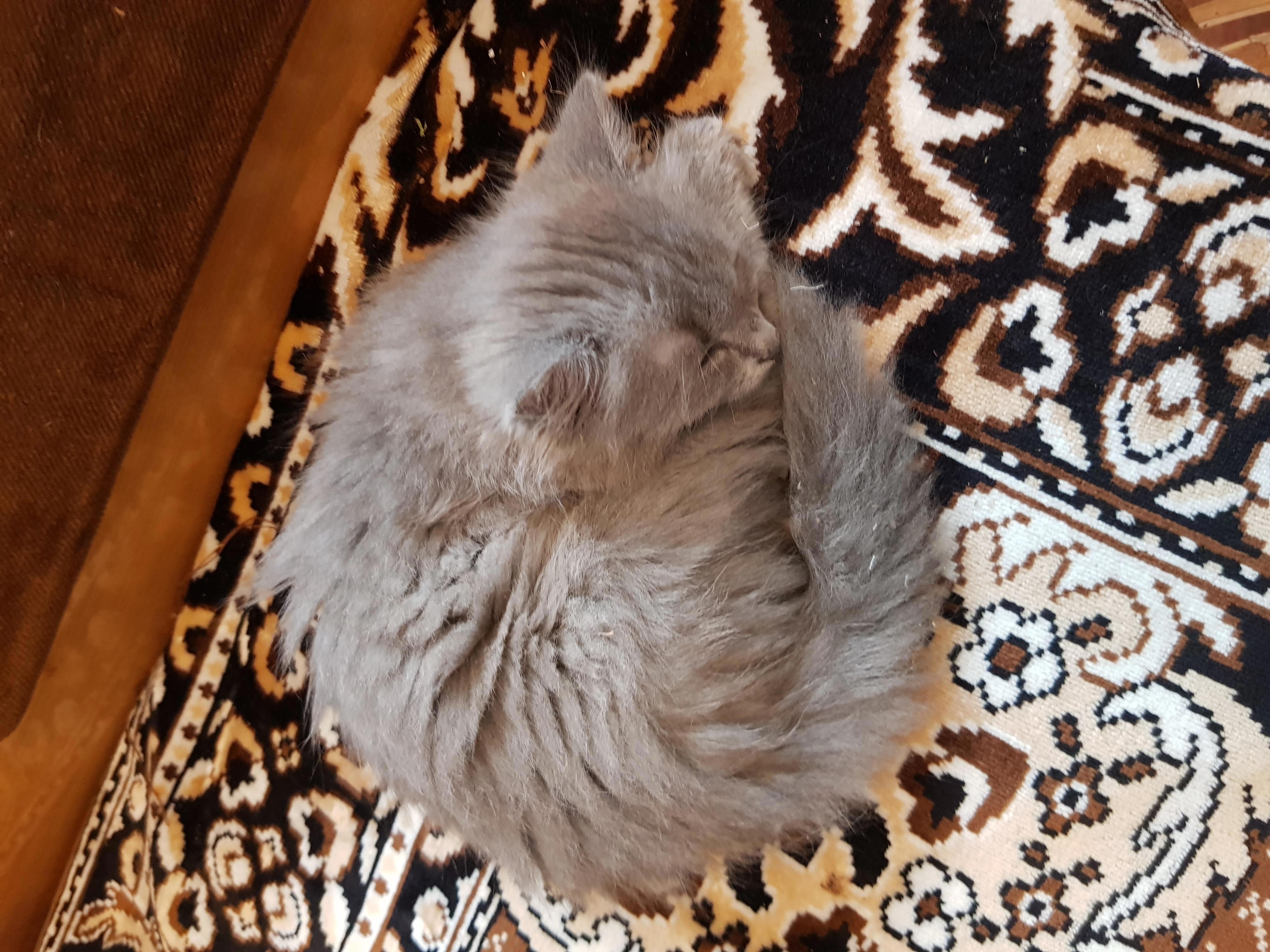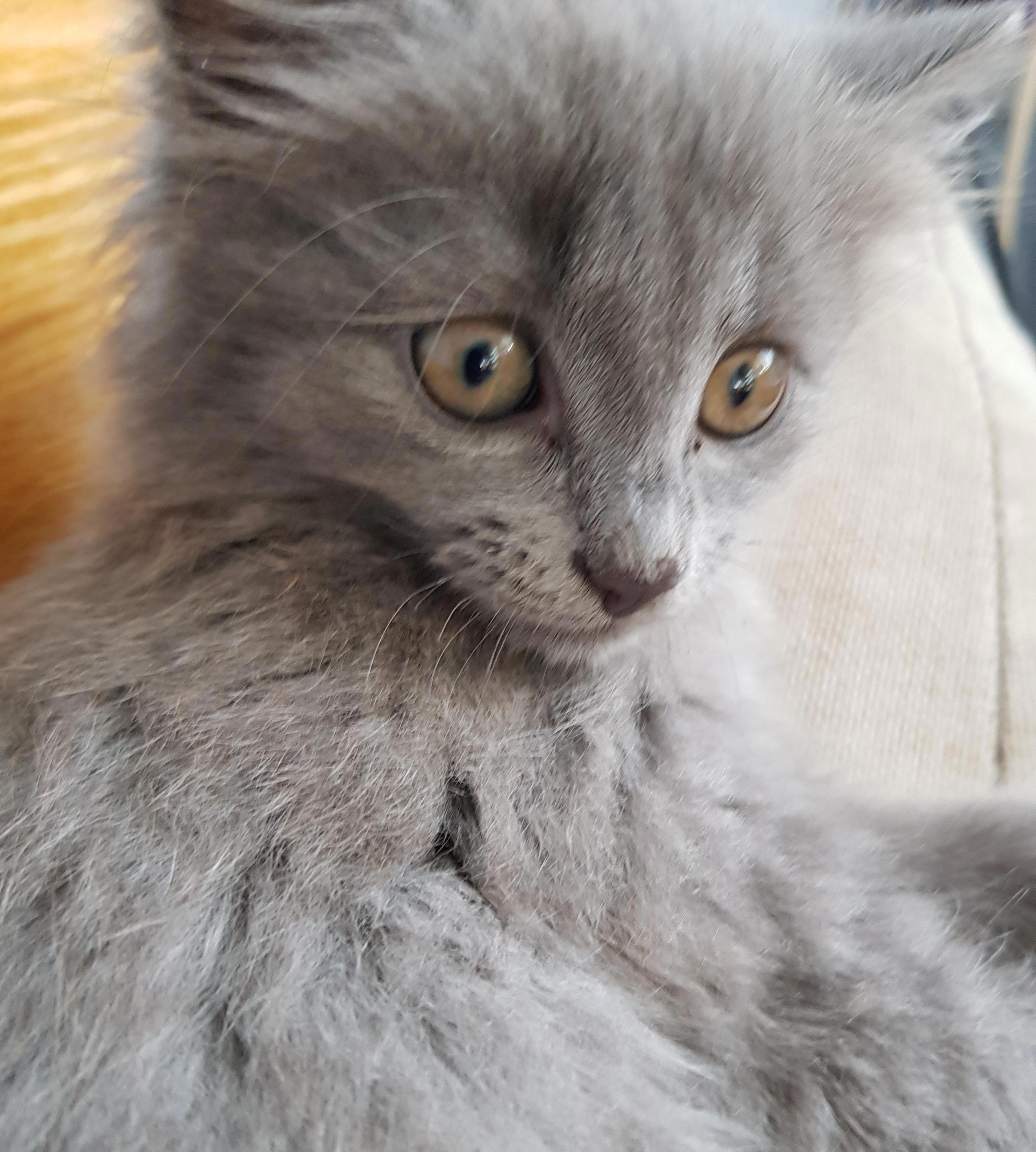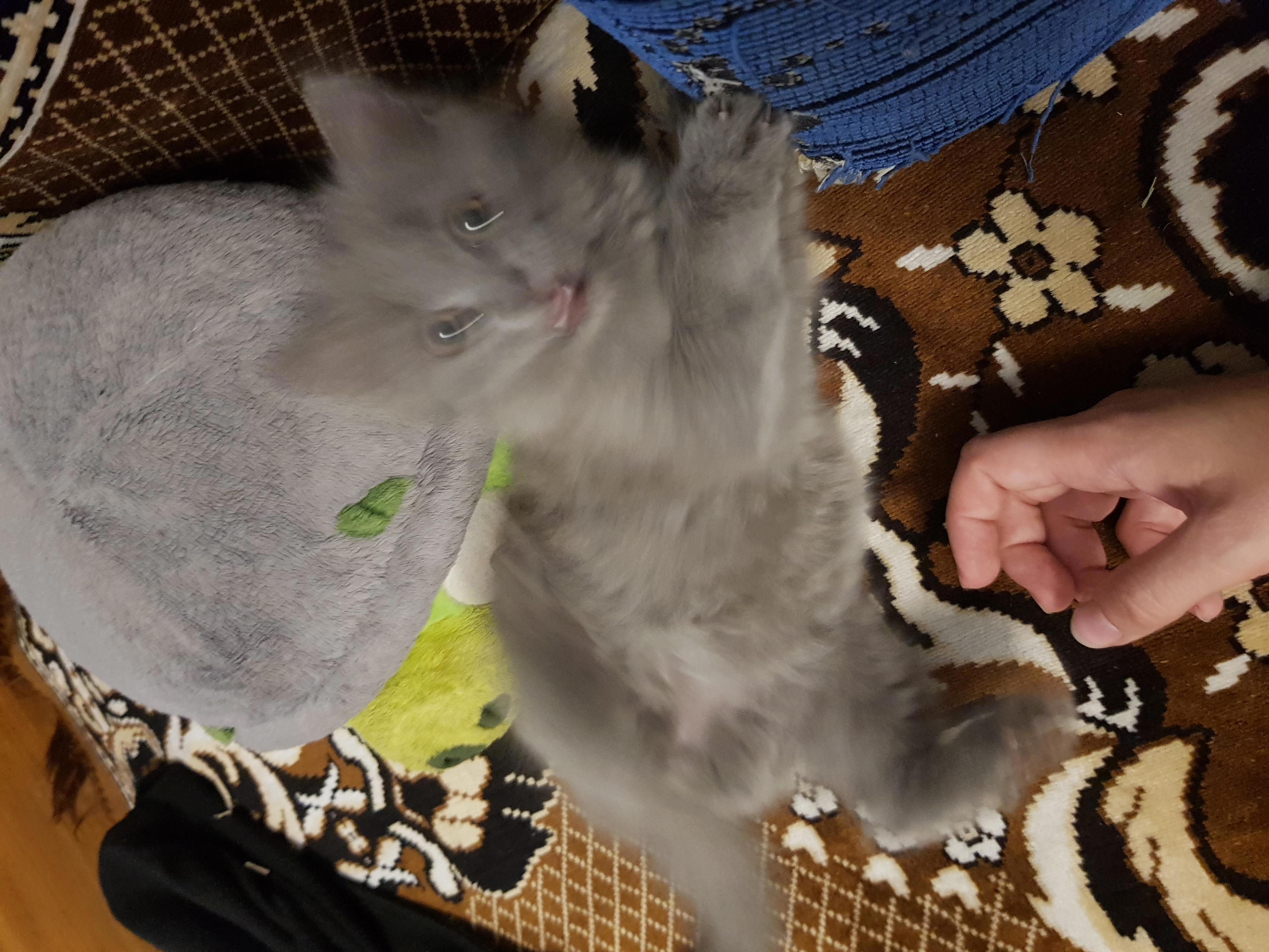 Мы её назвали Тень Мур. Тень, как мы узнали из гугла из породы Нибелунгов. У нее шелковистая шерстка, каждая шерстинка имеет белый кончик, от того, кажется, что её окружает воздушное облачко. Ярко выраженная мордочка создаёт впечатление, что она постоянно улыбается, даже когда нападает.