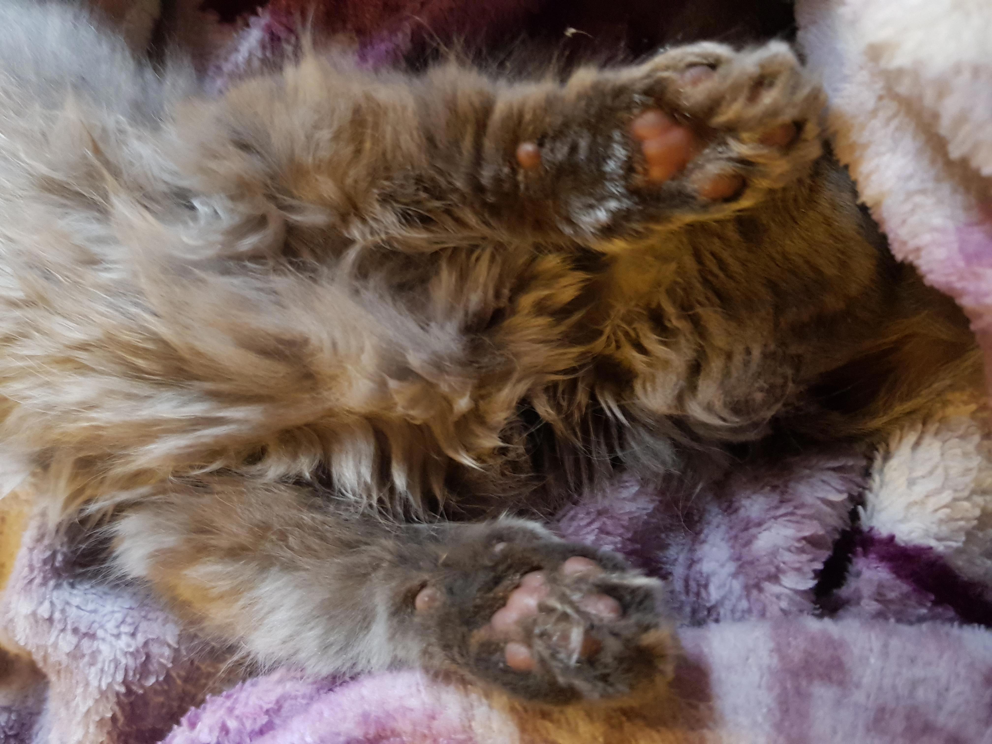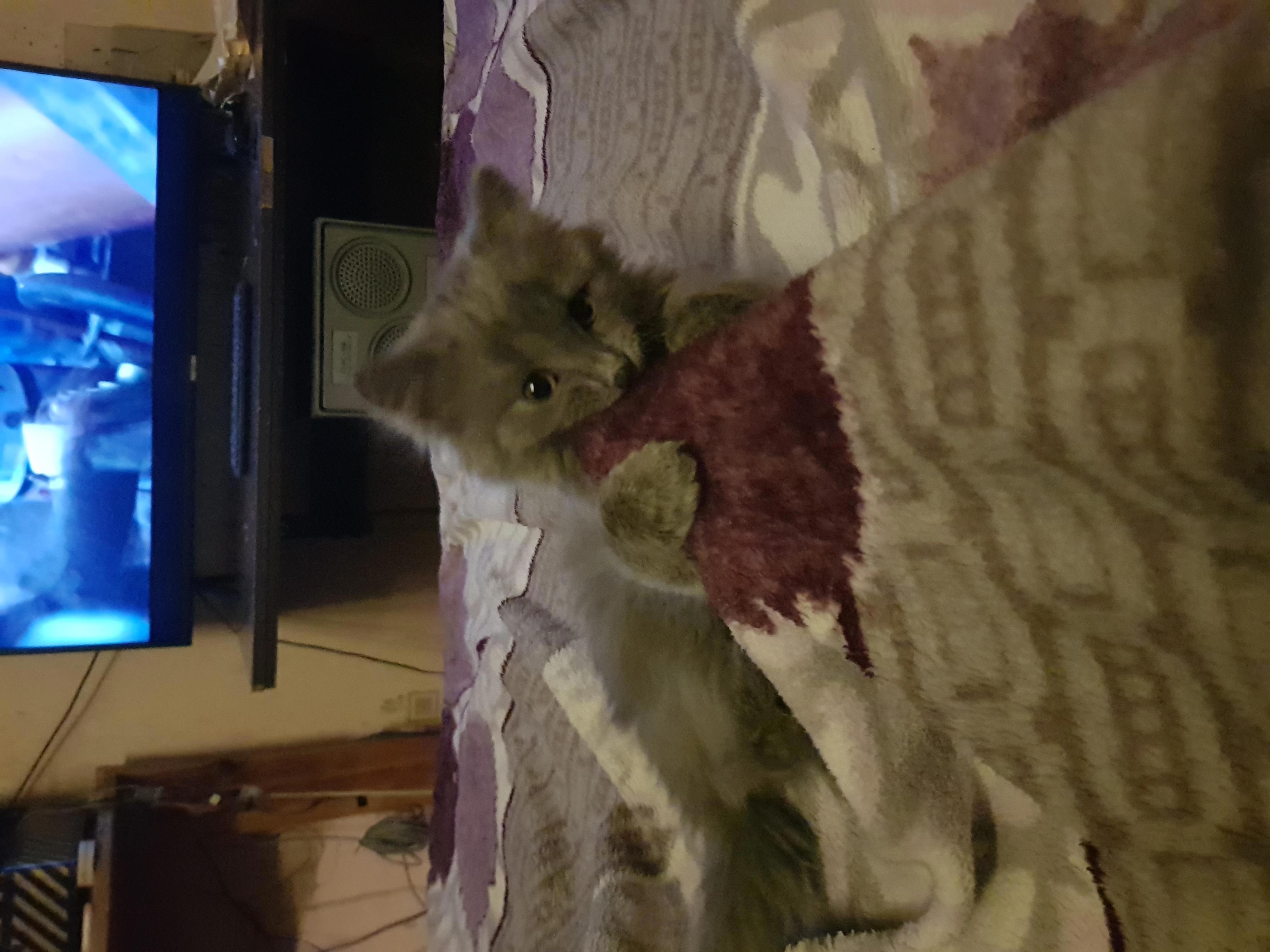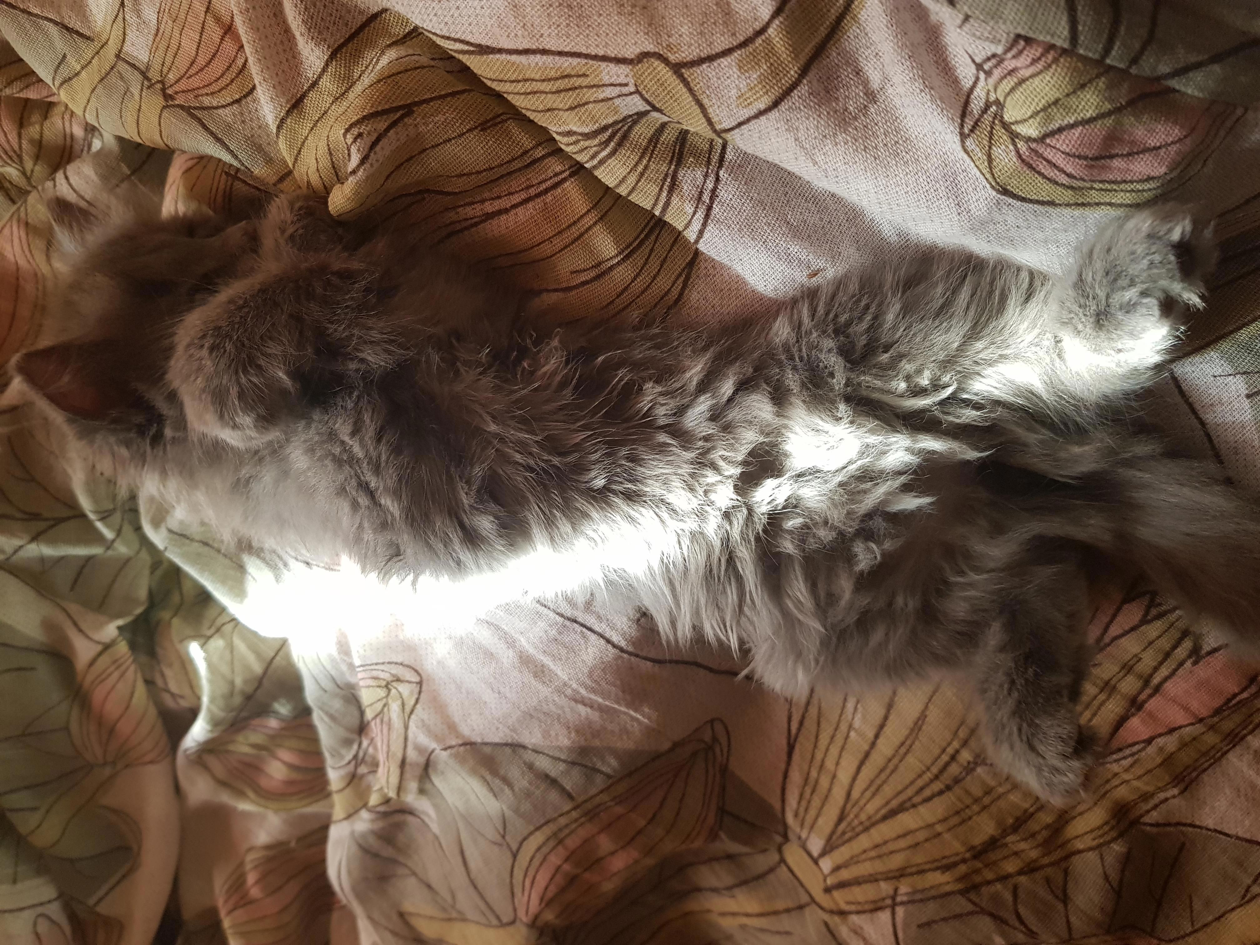 Мы её назвали Тень Мур. Тень, как мы узнали из гугла из породы Нибелунгов. У нее шелковистая шерстка, каждая шерстинка имеет белый кончик, от того, кажется, что её окружает воздушное облачко. Ярко выраженная мордочка создаёт впечатление, что она постоянно улыбается, даже когда нападает.