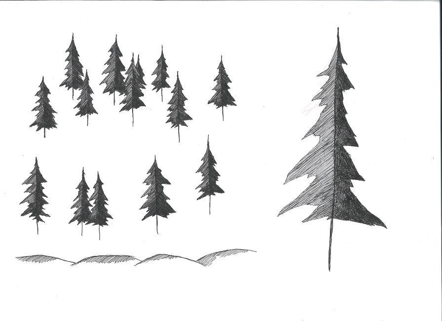 Нарисовала для "Виолы" ёлок. Ещё есть облачка и деревья, но ёлки лучше всего получились.