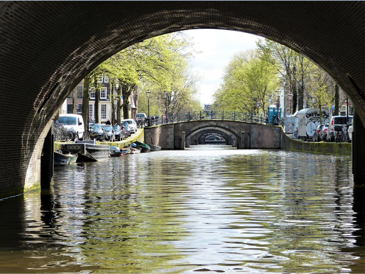 С этой точки видны сразу семь мостов подряд (через канал Reguliersgracht). Аудиогид утверждал, что это единственное подобное место в Амстердаме. Ни с какой другой позиции в этом городе столько мостов подряд увидеть невозможно.