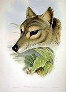 И в этом "ещё" была маленькая история: 7.09.1936 г. в Тасманийском зоопарке умер последний сумчатый волк. Говорят, что последними его видели англичане и даже пытались поймать. На рисунках он выглядел примерно так: