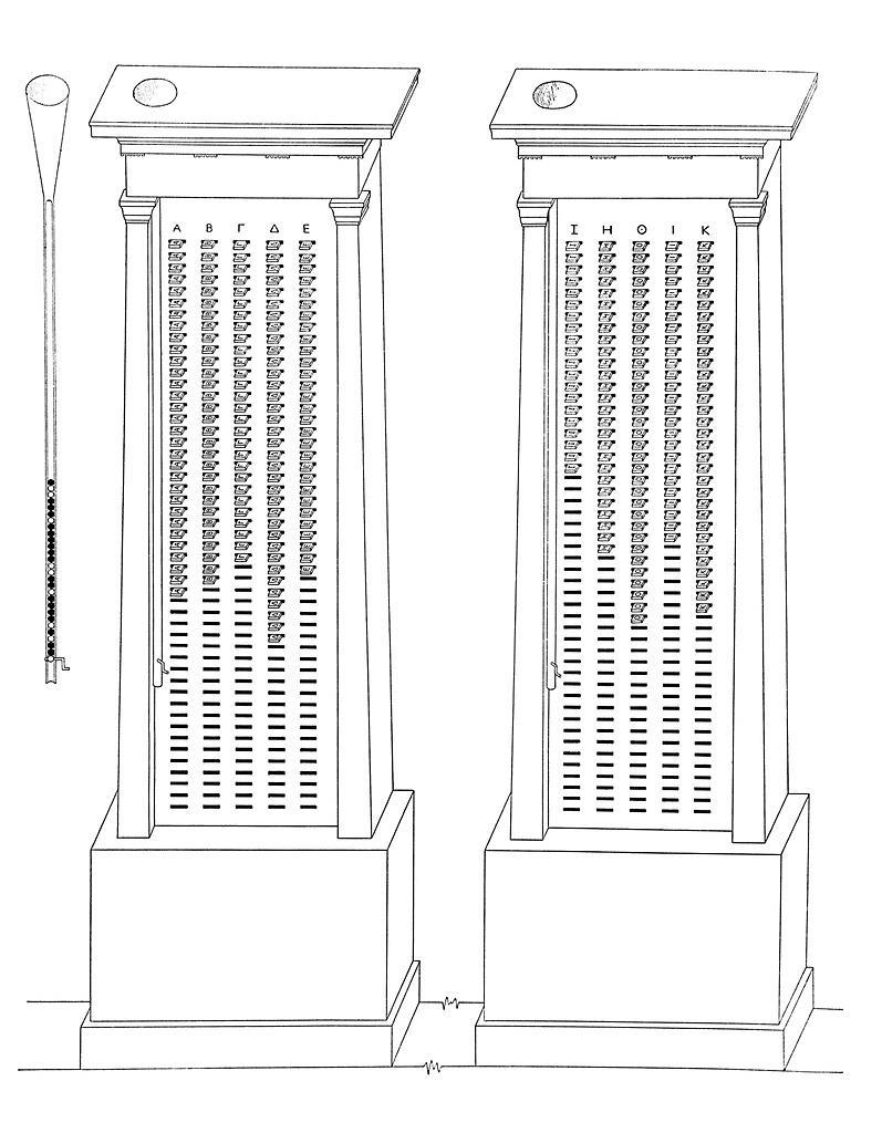 На картинке - Клеротерион — устройство для жеребьевки, служившее основным техническим инструментом афинской демократии. Клеротерион применялся для заполнения большинства государственных должностей, при выборах в городской совет и законодательное собрание, а также для назначения состава судов. Принцип клеротериона схож с принципом лототрона. Я бы написал лохотрона))) ТК даже тогда уже думали как продвинуть "своих" людей.