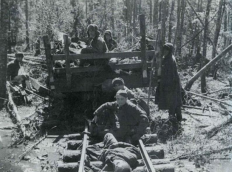 Это та самая узкоколейка и платформы, упоминаемые в главе. Дорогу построили, чтобы вывозить раненых.
