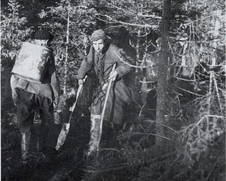 Это тоже фото из Второй ударной. Раненый боец встречает посыльного с продовольствием для госпиталяя.