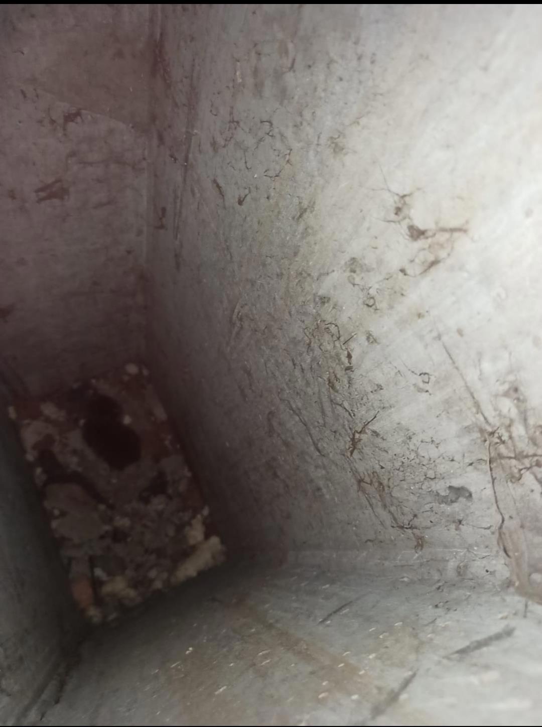 Начал он орать где-то в три ночи. К девяти я убедилась, что да. Вытяжка. Начала обзванивать службы. И нет, никто ничем не смог помочь. Откликнулся только сантехник, телефон которого чудом удалось достать. Он в районе 10 утра смог открыть подвал, помог пробраться через завалы и... Слева стеллаж, где новорождённые котята, дней эдак 7-10. Напротив отверстие ближе к потолку (пол моей квартиры) в вытяжке. Сфотографировала с фонариком через отверстие - котёныш там.