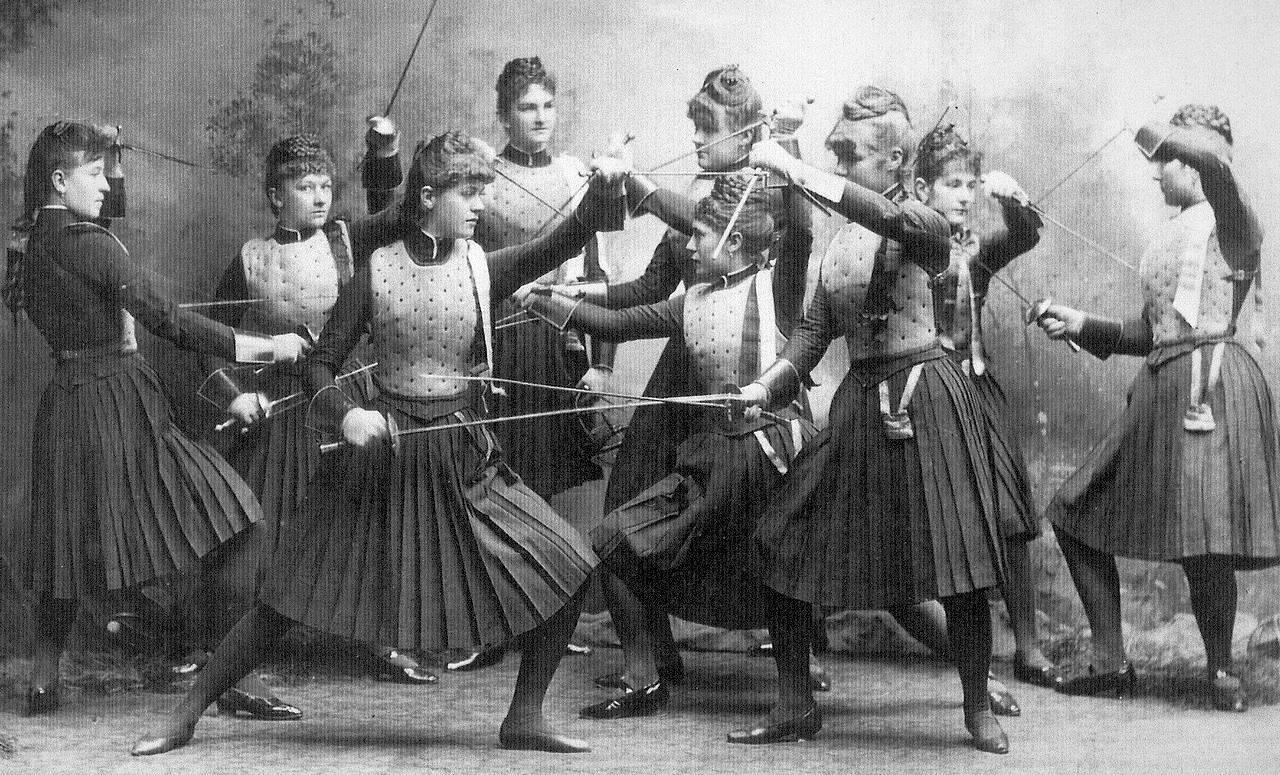С приближением 20-го века проблему в целом наконец удалось взять под контроль. То есть стало получаться удерживать дам на расстоянии от холодного оружия. А для тех, кому было невмоготу, стали организовывать секции типа спортивных, в которых дамы, под строгим надзором преподавателей мужчин, могли удовлетворить свою кровожадность без реального кровопролития: