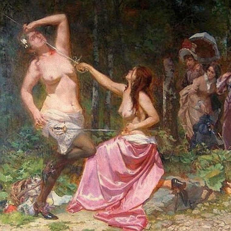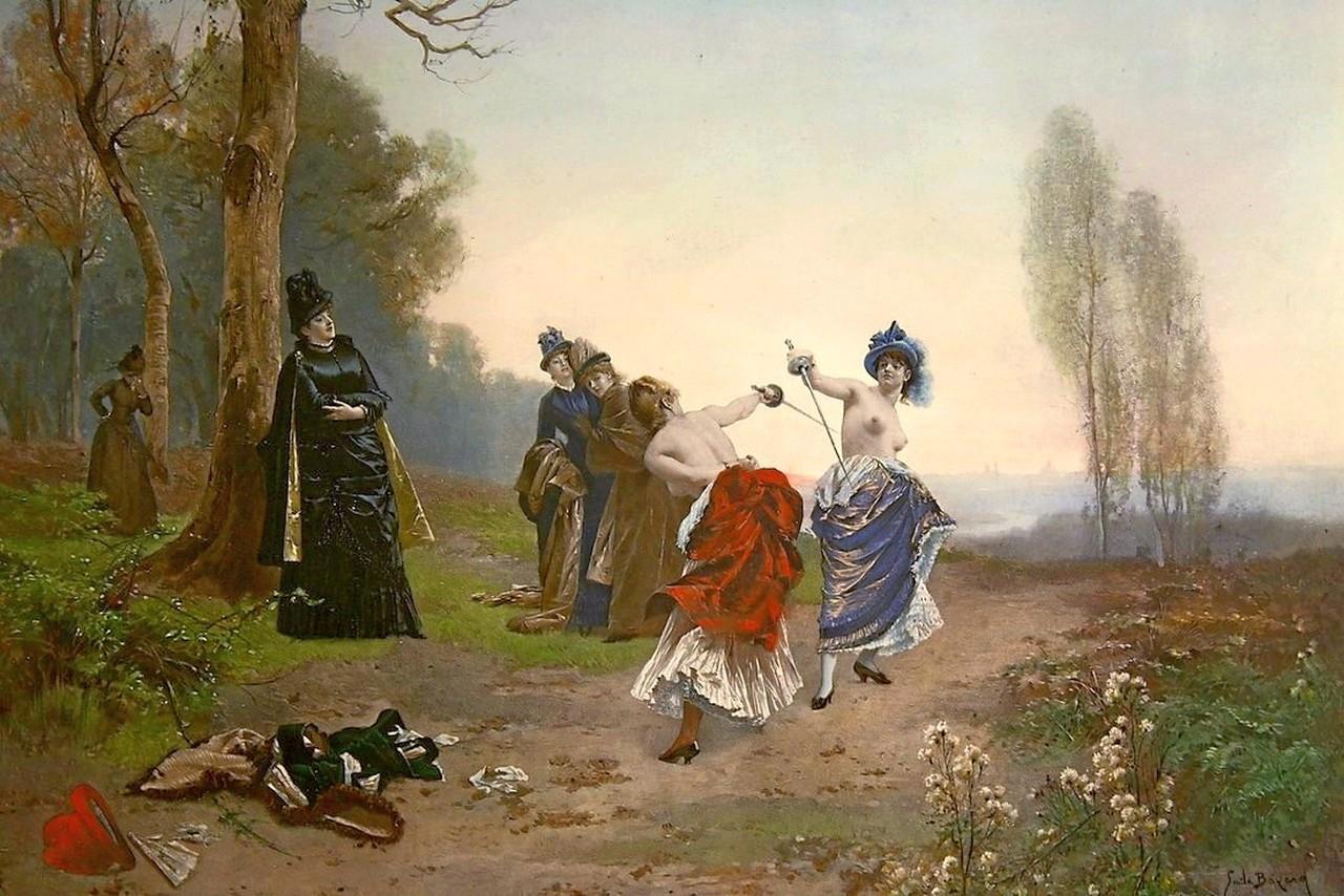 Проблема стала приобретать немного другой характер. Художники к тому времени, устав от библейских сюжетов и пейзажиков, потихоньку начали осваивать эту тему. В результате женская дуэльность стала приобретать гламурный характер. Это было большим достижением развивающейся науки психологии. Первой ласточкой в этом направлении можно считать событие произошедшее в 1892 году на страницах австрийских, а потом и мировых газет.