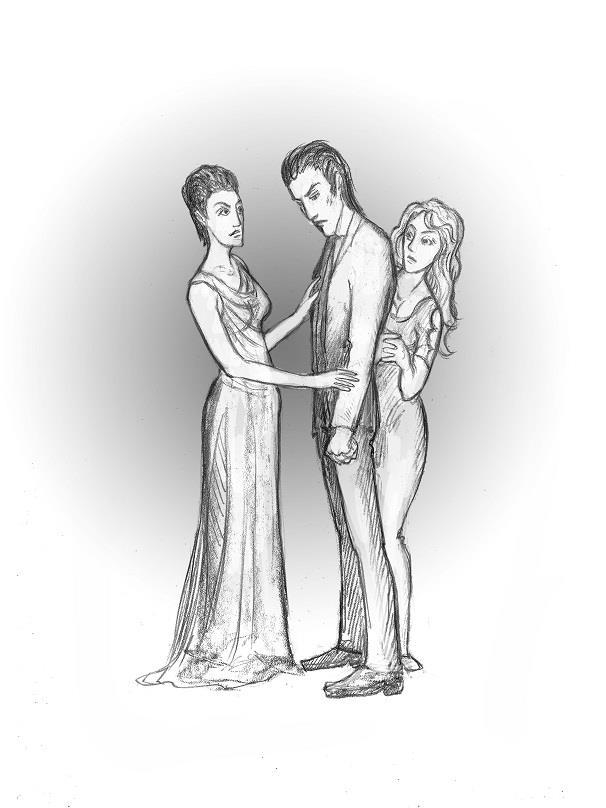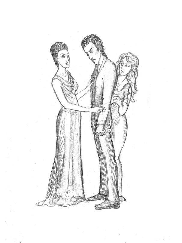 Ну, в общем, вот так я эту сцену увидела (старалась передать фамильное сходство матери и сына хотя бы в похожих причёсках):