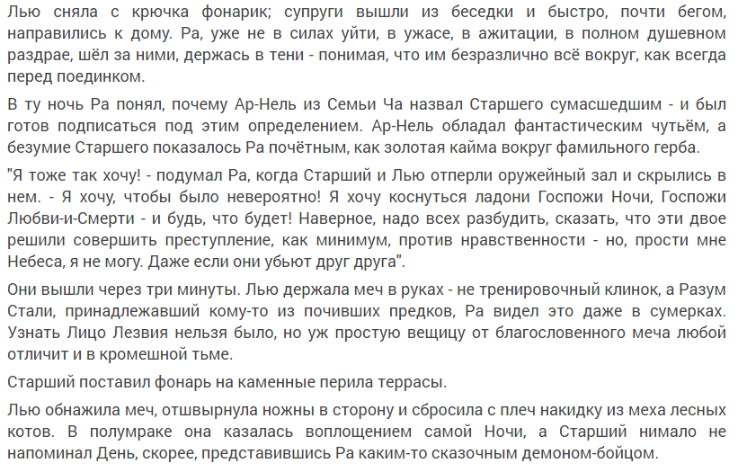 Драматичный момент, когда младший отпрыск князей Л-Та подсматривает за поединком старшего брата и его жены.