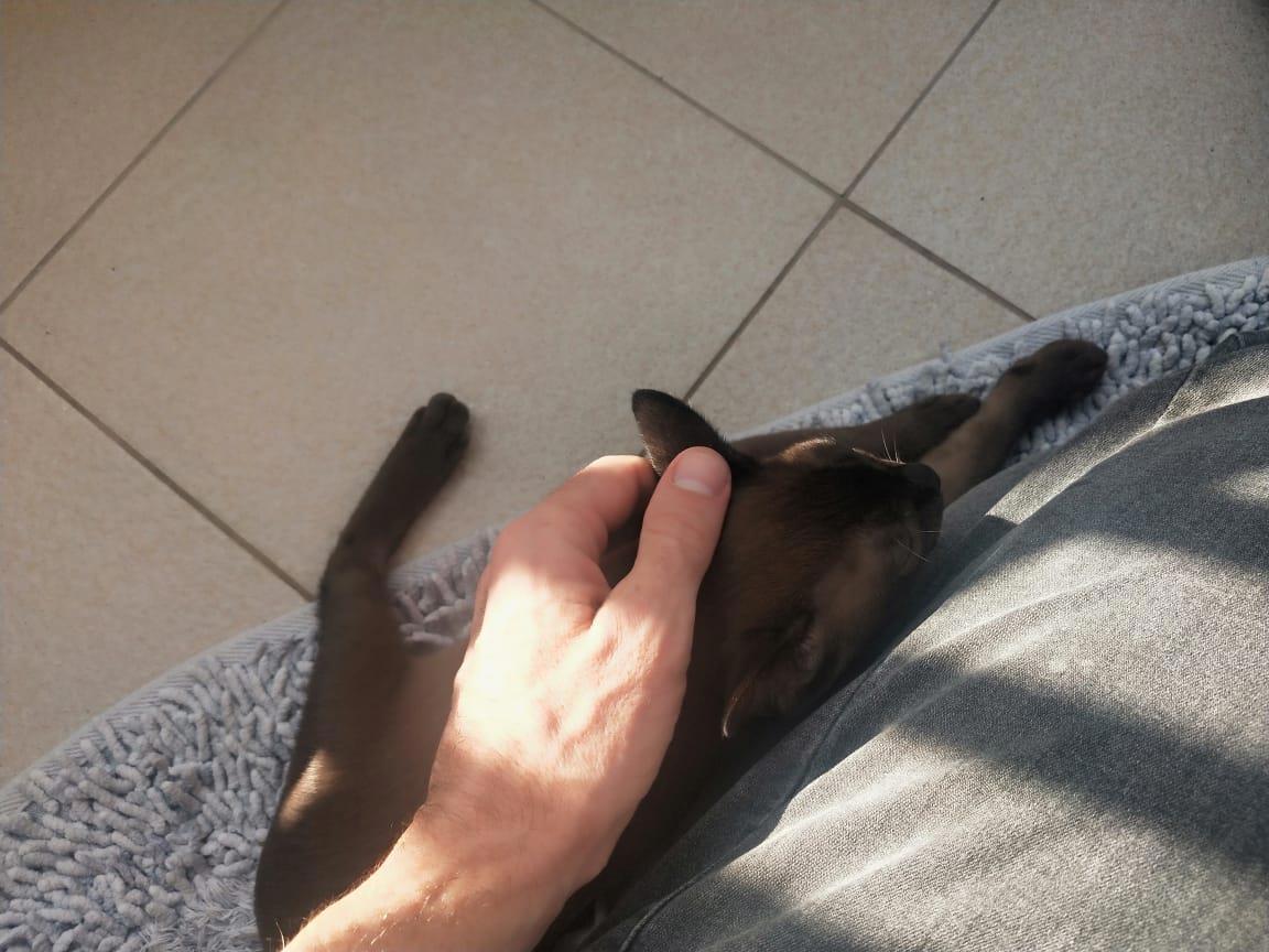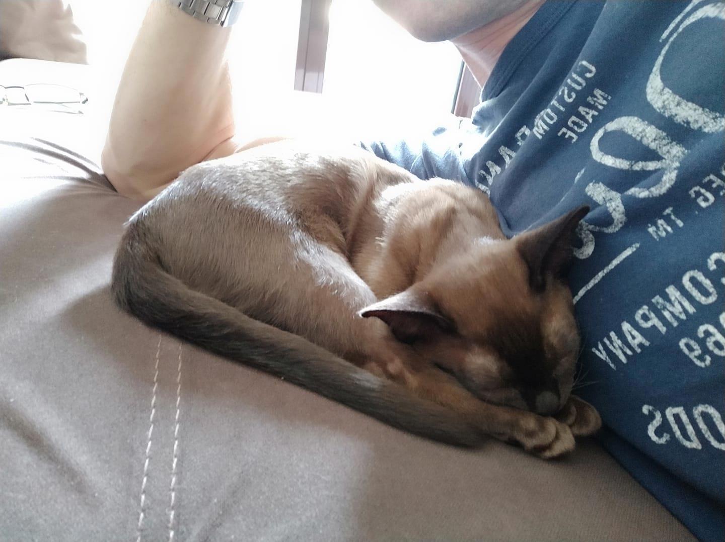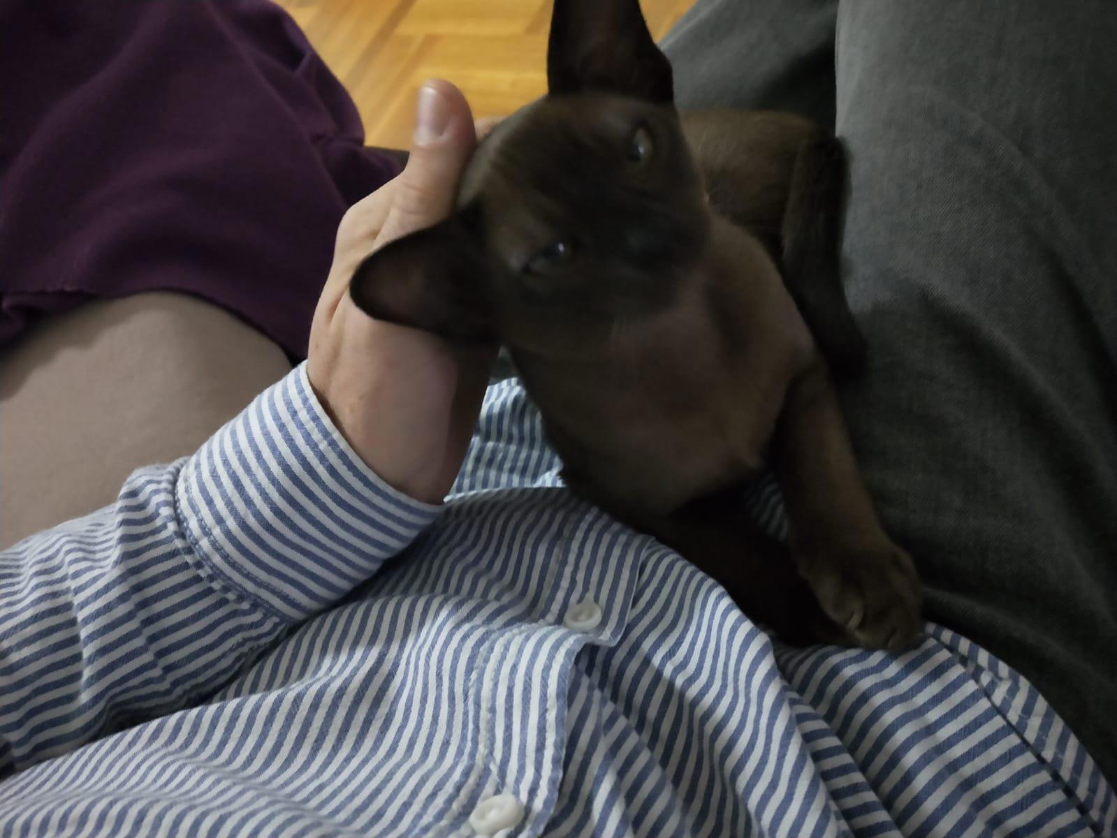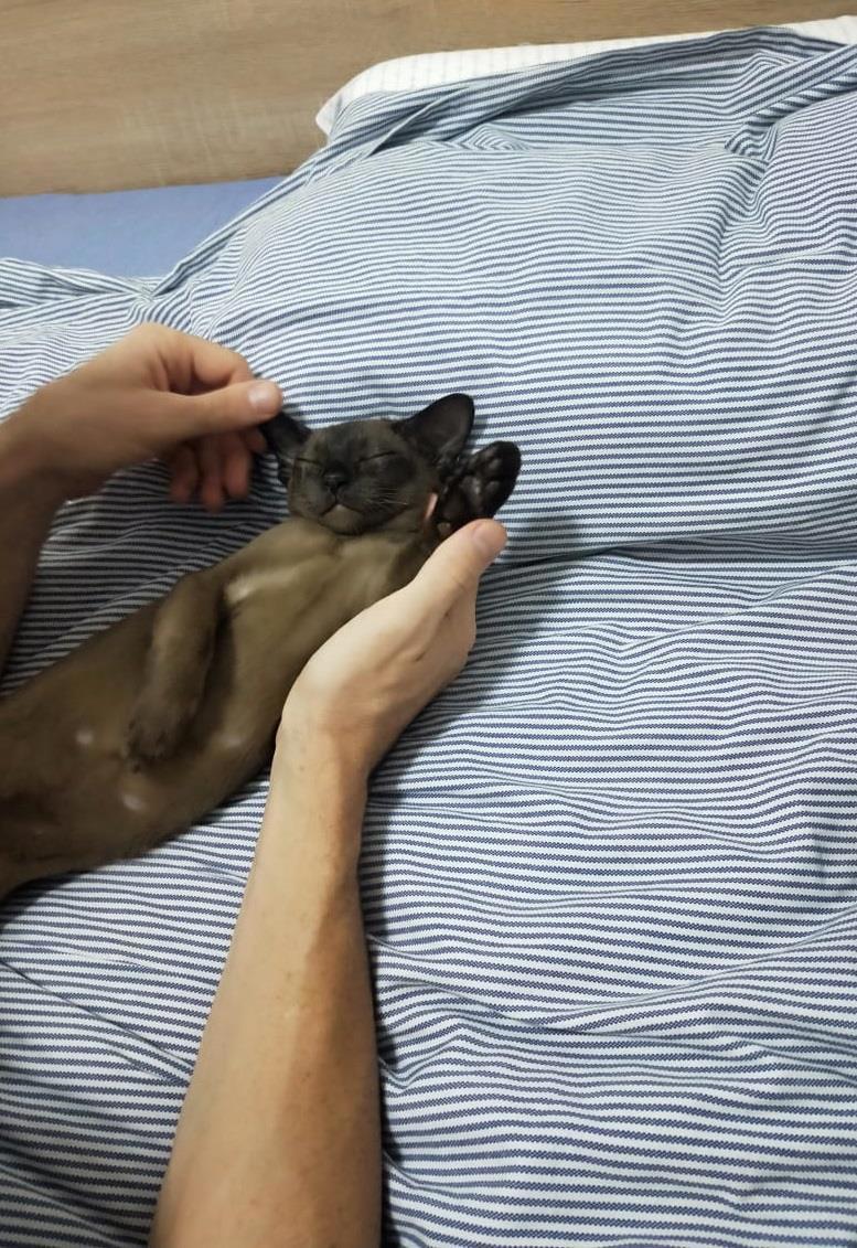 Понятное дело, что он сразу стал любимцем) С учётом его контактности (а он за нами ходит, как собачка, дрыхнет в обнимку, мырлыканьем отзывается на ласку, няшный, забавный, и вообще сразу стал своим в доску) не полюбить его нам было попросту невозможно)