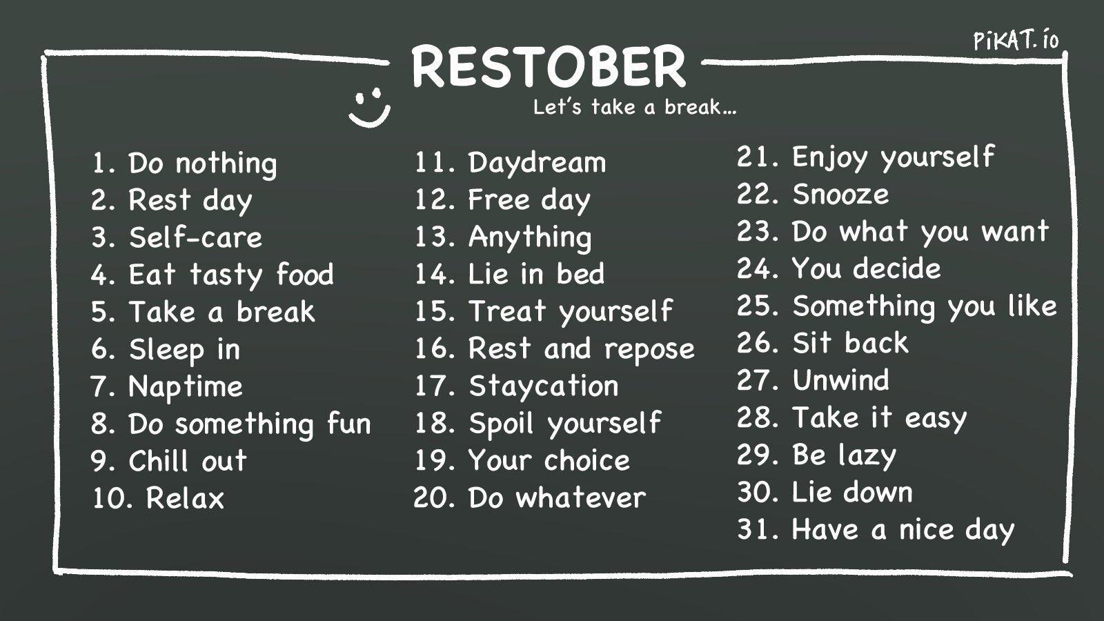 Заодно нашла отличный марафон вместо инктоберов, таксебектоберов и тд. РЕСТОБЕР, вот мой выбор