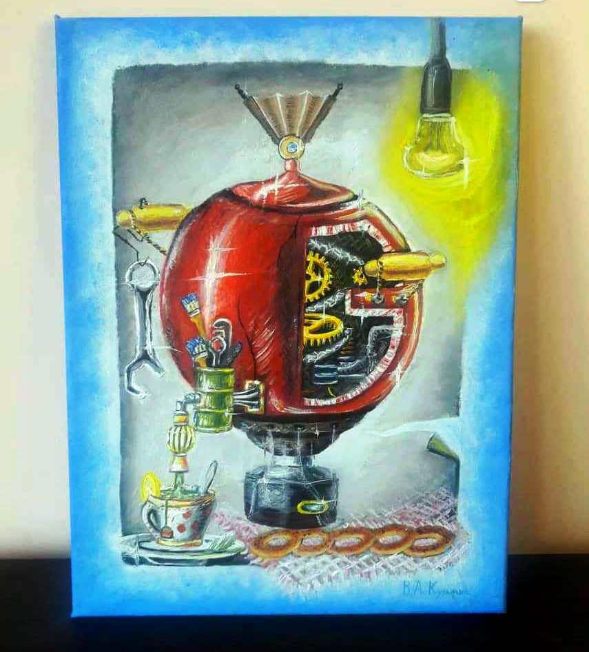Хочу представит вам работу моего племяника. В живописи, он, как и я, самоучка, но вот видение мира у нас разное. Я рисую то, что вижу вокруг, а он то, что видит внутри.