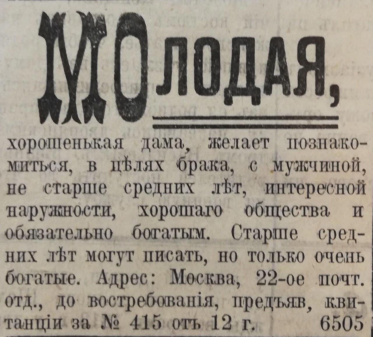 Автор: Григорий ЧумаковЕщё в Царской России некоторые пары знакомились посредством объявлений в газете.