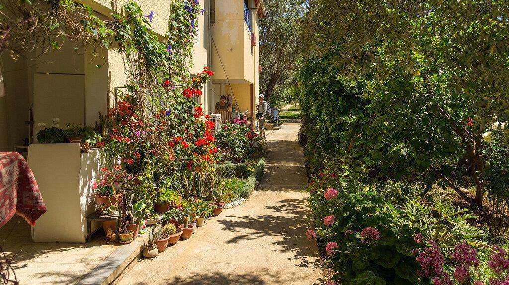 Так уж получилось, что я арендую в кибуце квартиру в домах для пенсионеров. Тут дешевая квартплата и коммуналка - деревня. Тут свои (кибуцные) овощи, фрукты, молочка, куры... Тут вокруг оливковая роща и до города на автобусе 20 минут. Есть магазин и фельдшерский пункт.