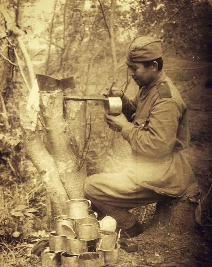 На фото - может быть тот самый снайпер кружки делает из пустых консервных банок.
