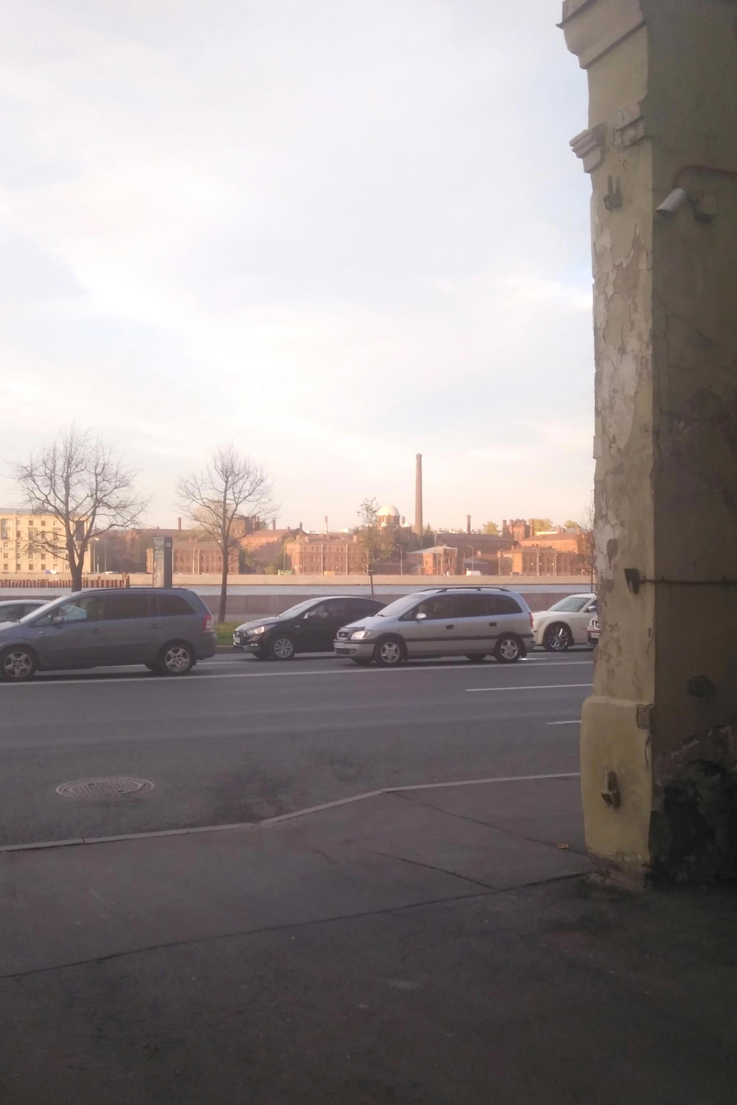 "Кресты", СИЗО №1, грязно-красное здание в виде двух крестов. Вид через Неву: