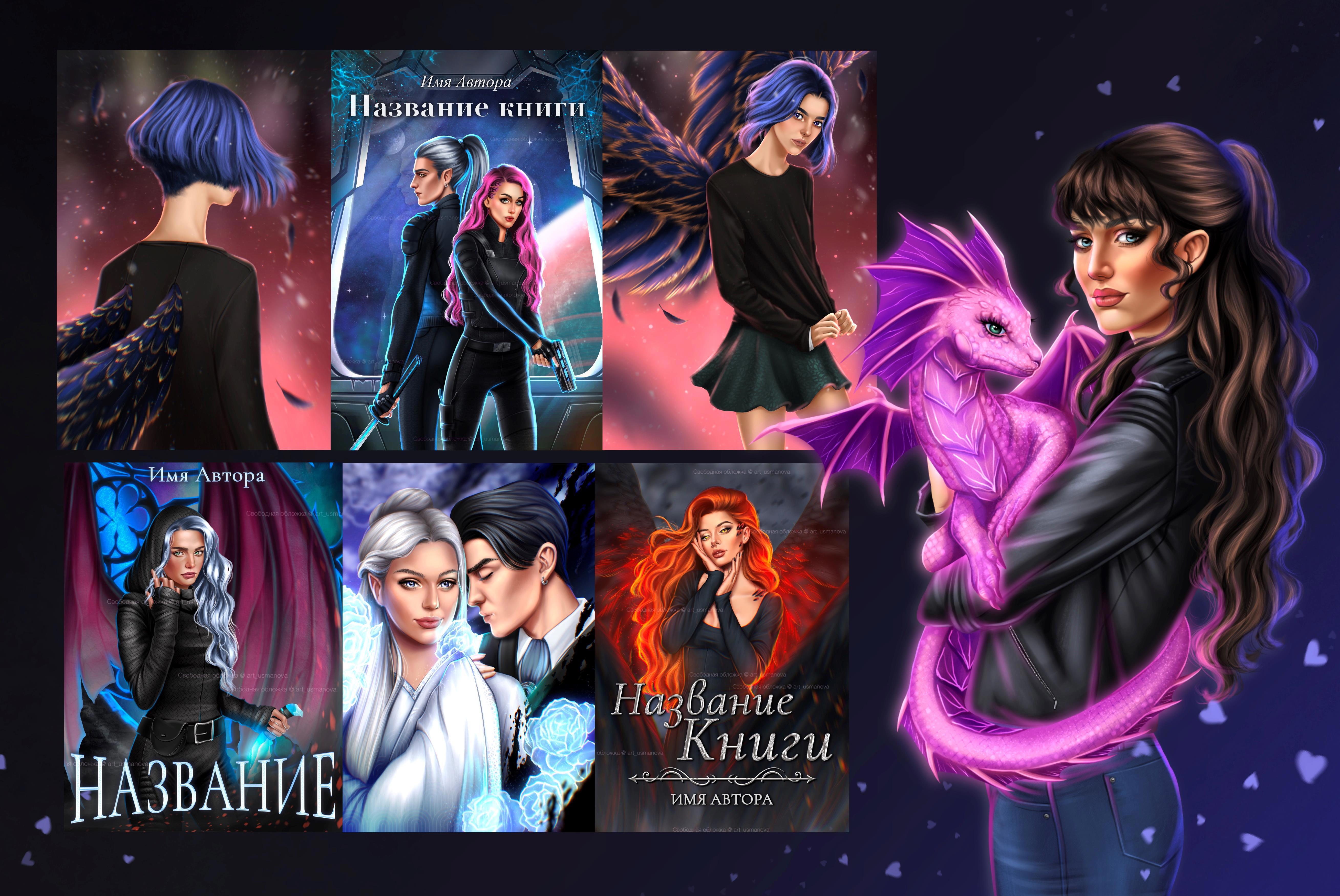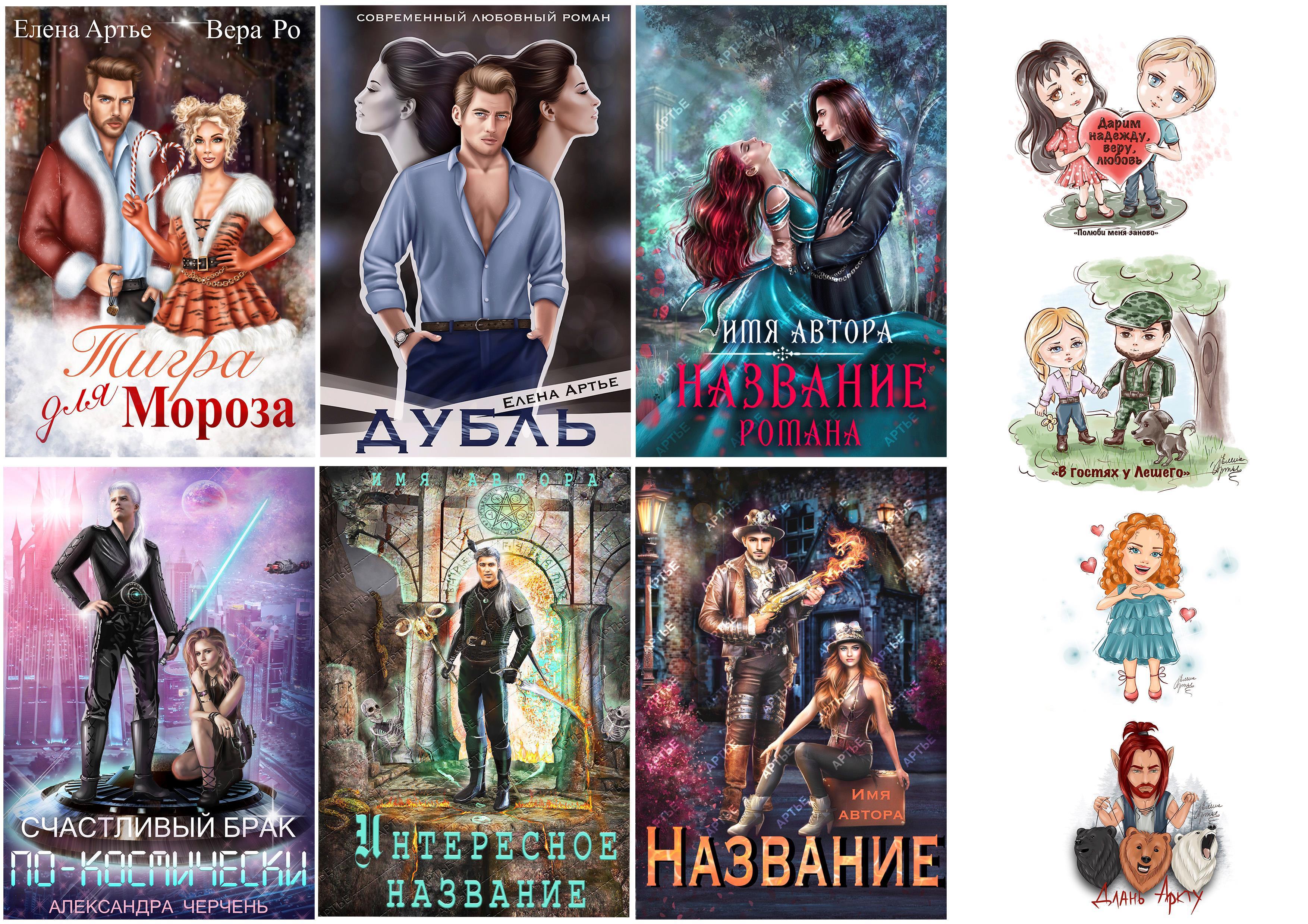 Возможно создание серии обложек в единой стилистике. Возможна проработка персонажа или персонажей с автором для последующего добавления на готовые задники\создания серии иллюстраций (обложек) с их участием. (узнаваемые лица персонажей)