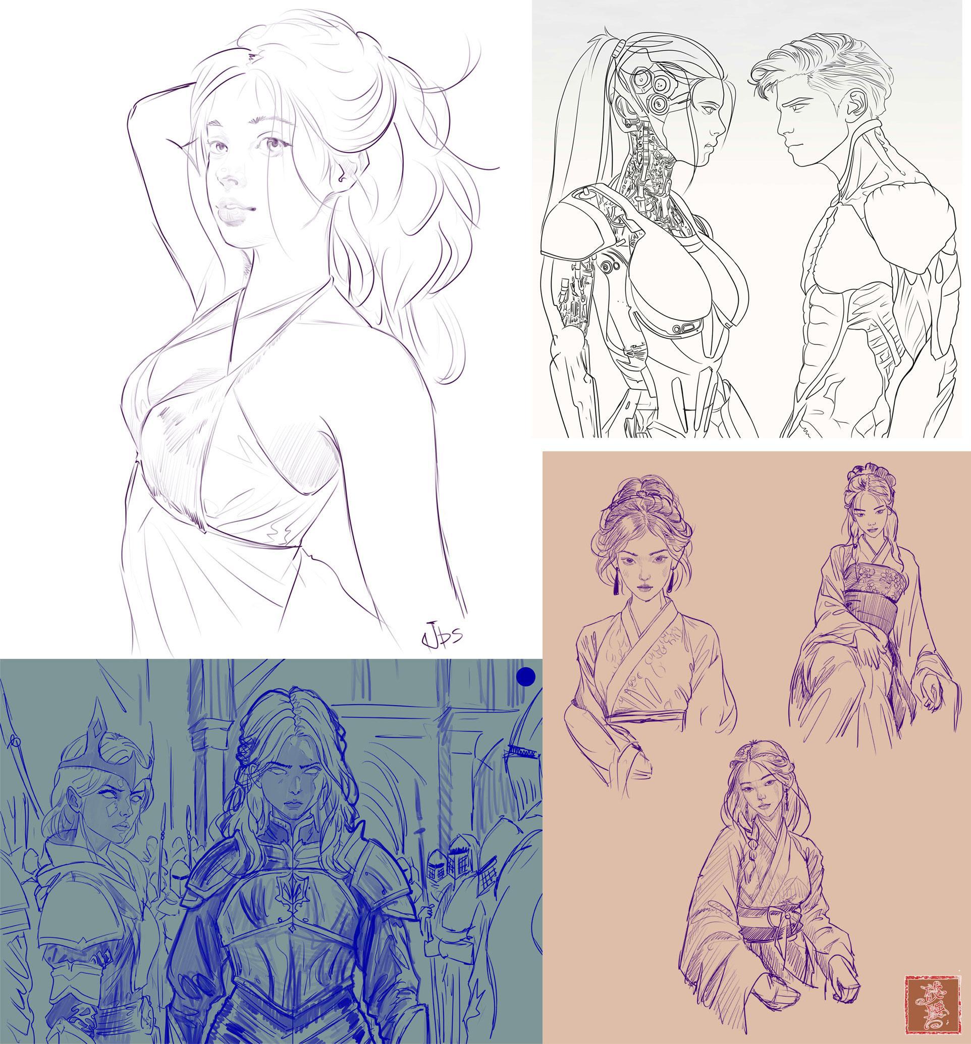 Рисую: историческое, современное, фэнтезийное. Людей и не совсем ;) Животных, монстров. Доспехи и историческое/фэнтезийное оружие. Архитектуру, природу, интерьеры. В современном оружии не разбираюсь, но при наличии референсов всё решаемо.