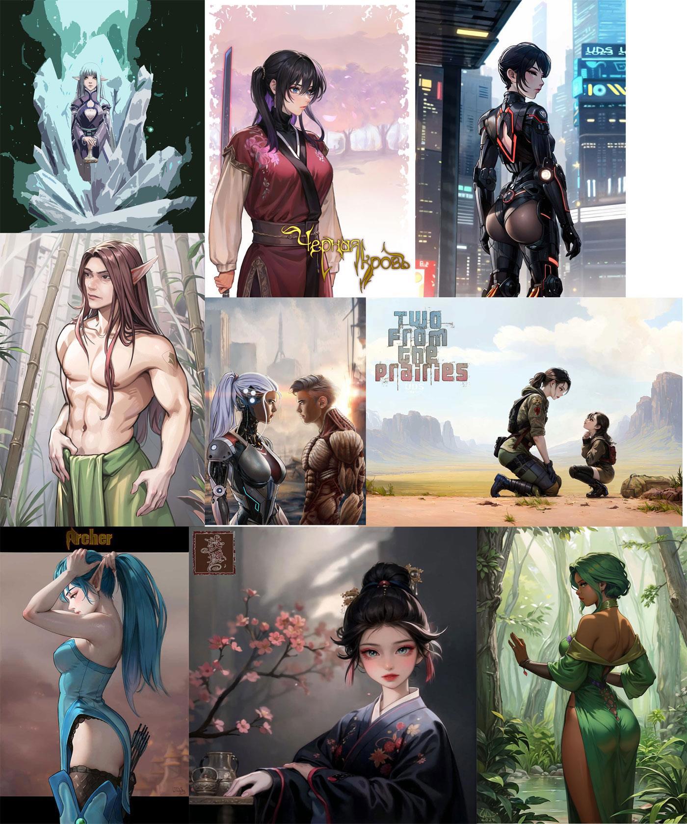 Работаю со всеми жанрами, кроме порно. Использую нейросети, коллаж, дорисовку.