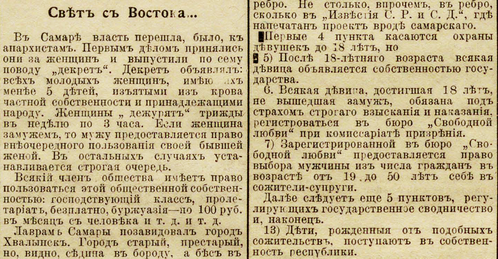 Но большевики тоже отметились: тут тебе и общество "Долой стыд" под руководством Радека, которое устроило голую демонстрацию в Москве аж в 10 000 человек без ничего, тут и "Декрет об отмене семьи" и много чего еще, включая и первый ЛГБТ парад.