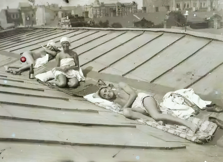 Народная артистка СССР Бабанова М.И с друзьями загорает на крыше. Ростов-на-Дону. 1925 год