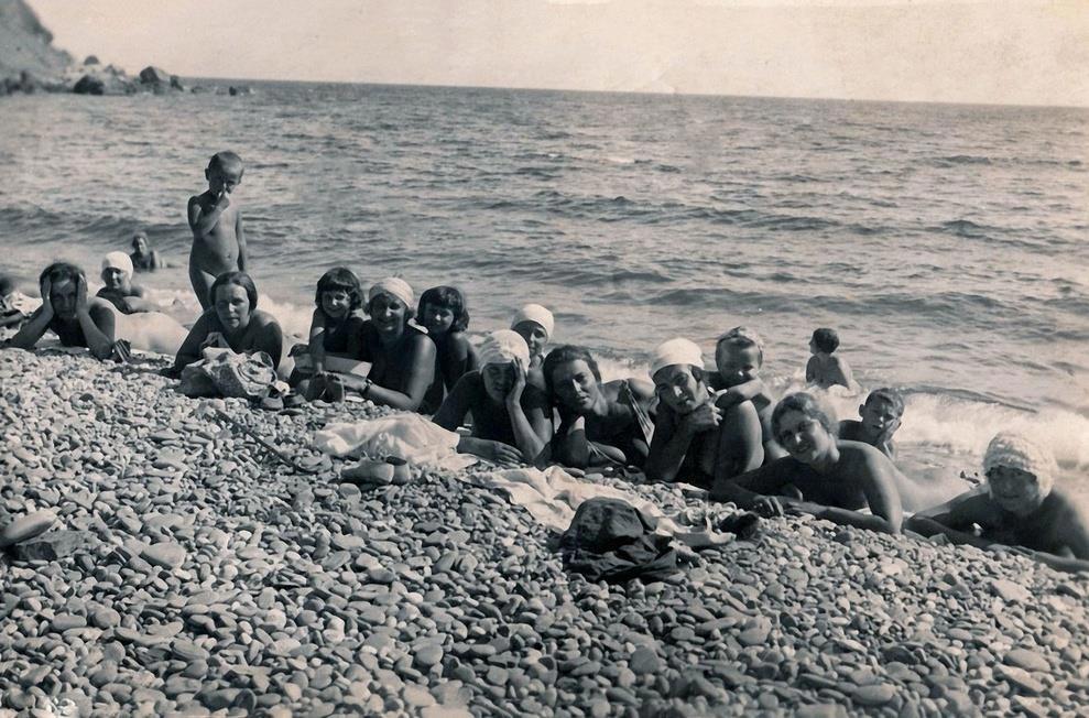 Пляж санатория «Кубуч». КУБУЧ (комиссия улучшения быта ученых). В 1930-е годы в данном санатории отдыхала элита СССР - известные ученые, писатели и военные. Фото 1932 года