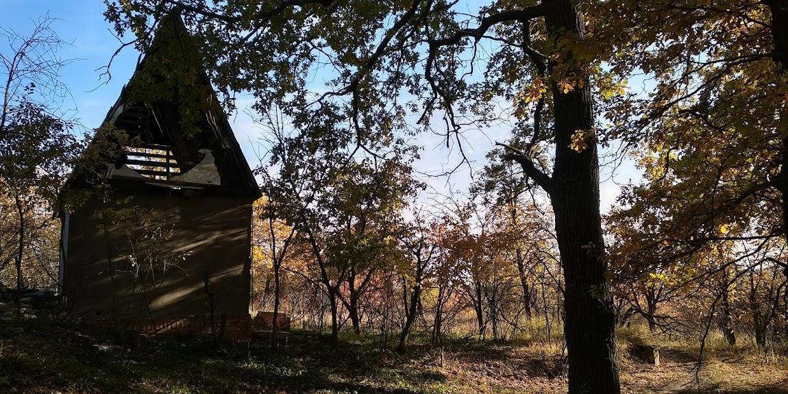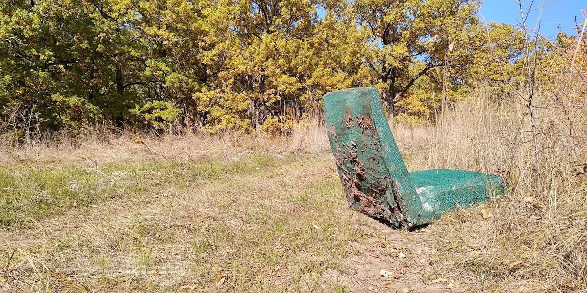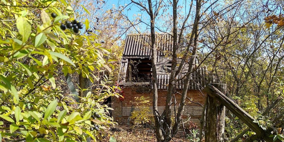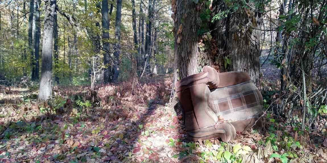 В лесу из кустов выглядывают депрессивные дачные домики, в которых никто не живет уже целую вечность. На дороге валяются гниющие мягкие кресла. Как они сюда попали?