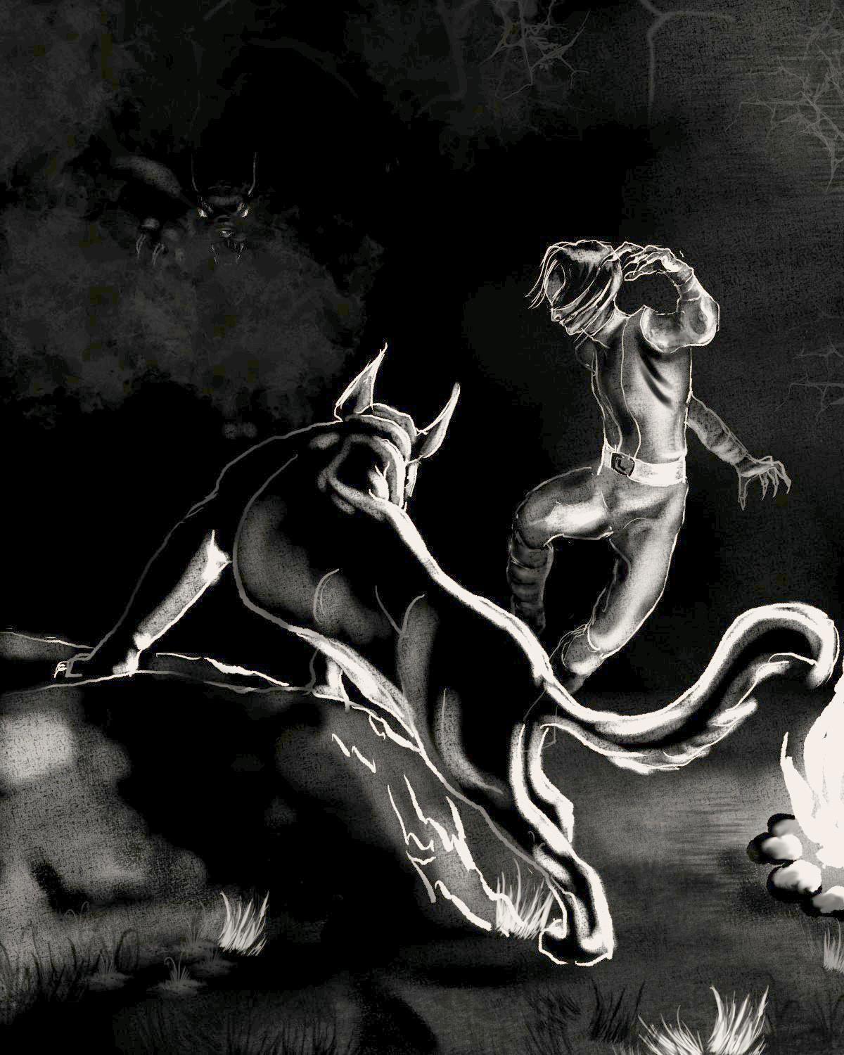 Мне повезло получить к этому произведению целых две иллюстрации от Ольги Морох. Первая получилась в процессе моего первого участия в Шестой Карусели иллюстраторов. Ольга нарисовала ее вне конкурса, и эта иллюстрация заняла первое место в этой номинации.