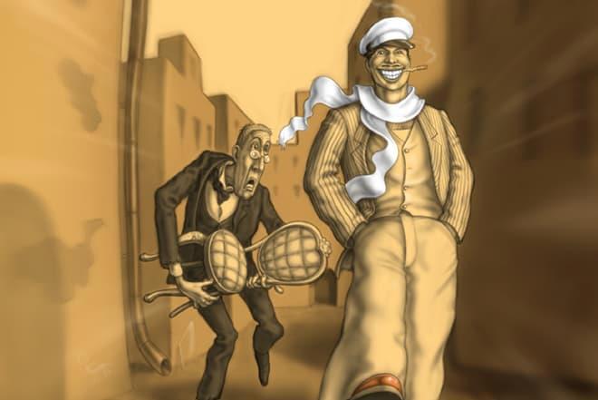 Митя Ширмахер, рассказывая о себе, из всей своей богатой событиями биографии охотно сообщал только одно: «Я — внебрачный сын турецкоподданного». На вопрос: «Кто вы по профессии?» — гордо отвечал: «Комбинатор!» Во всей Одессе не было вторых таких френча и галифе, как у Мити: ярко-желтые, блестящие (он сшил их из ресторанных портьер). При этом Митя сильно хромал, носил ортопедический ботинок, а глаза у него были разными: один зеленый, другой желтый.