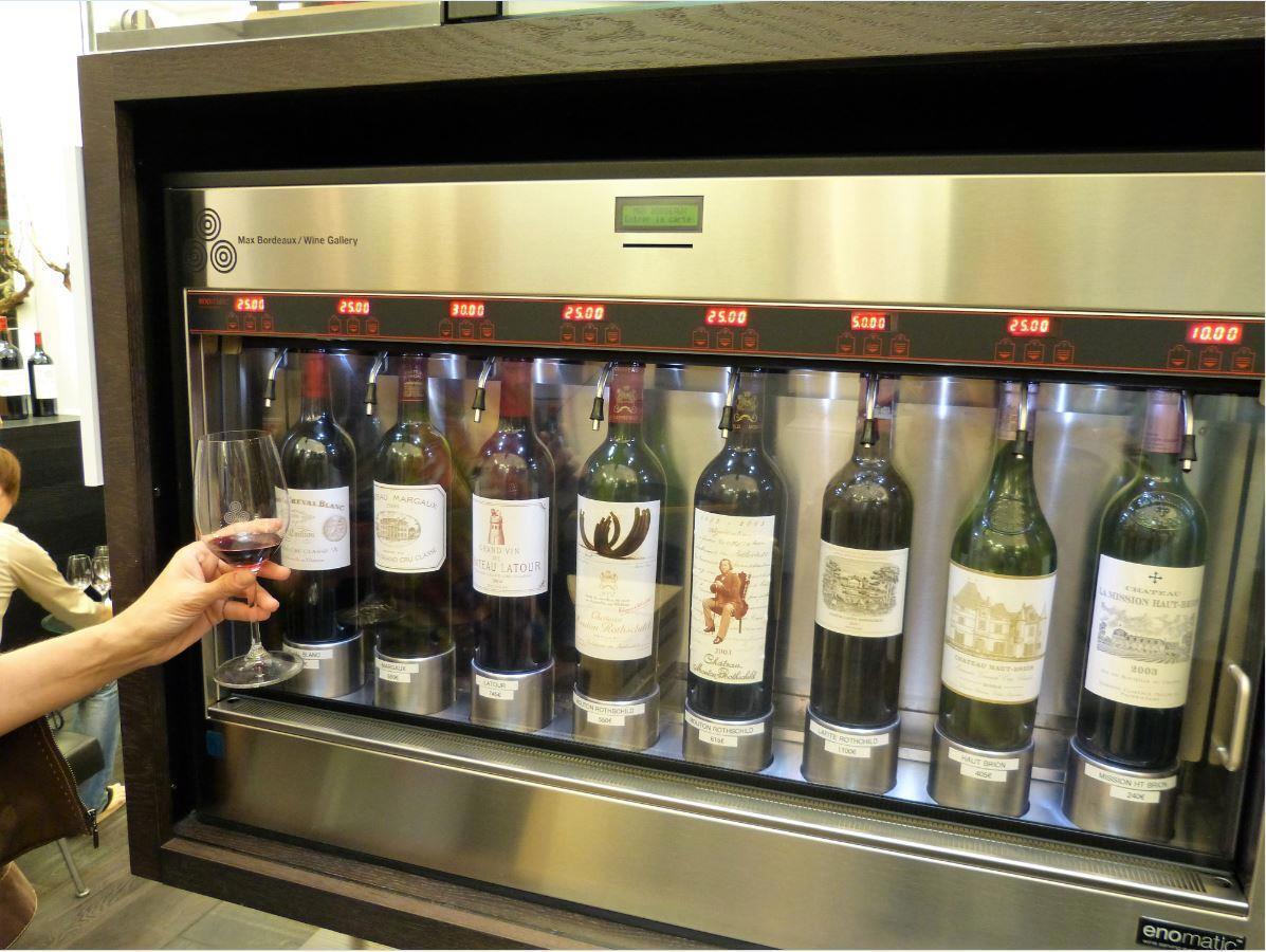 А ещё тут стоят автоматы, которые разливают в бокалы лучшие вина Бордо. Берёшь у девушки за стойкой карточку, кладёшь на неё некую сумму денег, после чего можешь дегустировать маленькими порциями по 25-50-75 миллилитров всякие Château Margaux или Château Lafite Rothschild. Бутылку такого вина за 1000+ евро покупать будет далеко не каждый, а вот попробовать немного, чтобы составить собственное представление о Premiers Grand Crus, захотят многие.