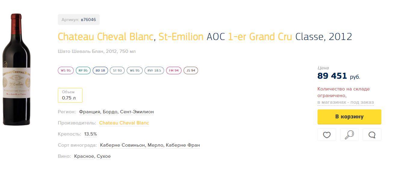 Примерный уровень цен понятен. А ведь ещё есть великое вино из Сент-Эмильона, Château Cheval Blanc.