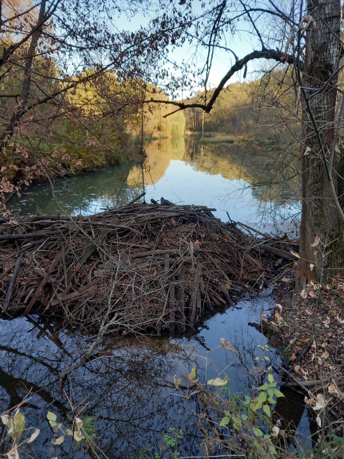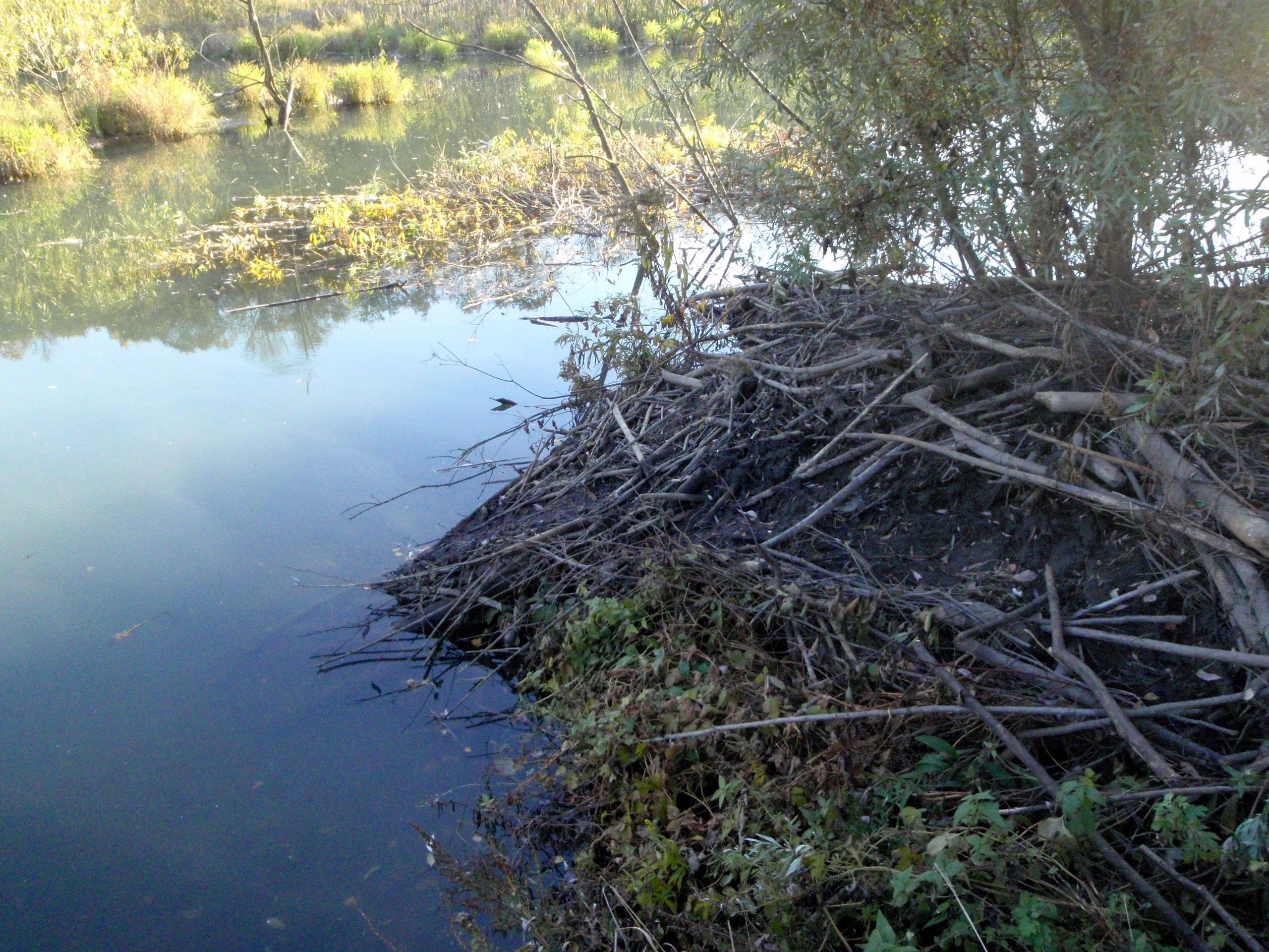 Бобровая хатка (на переднем плане)