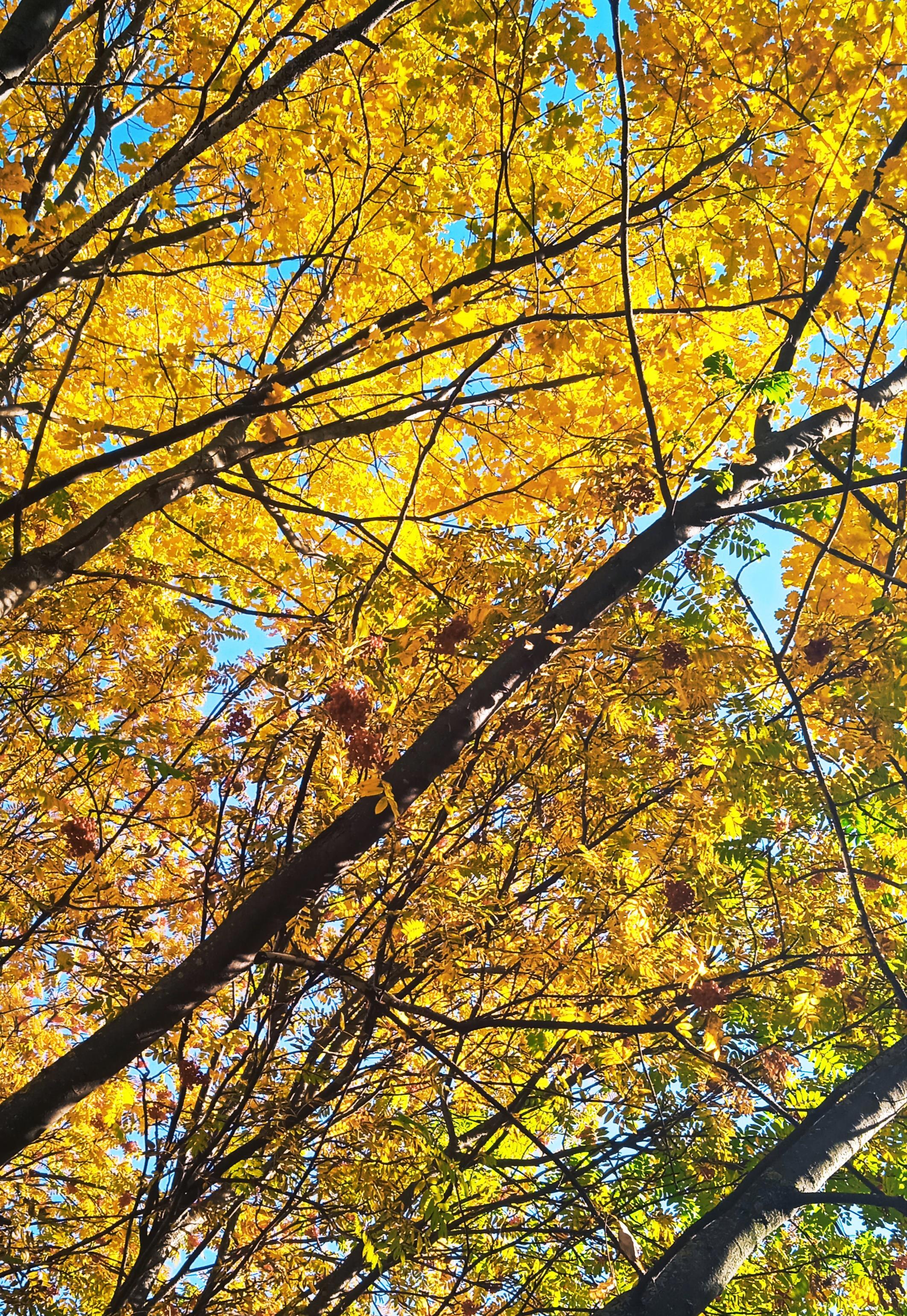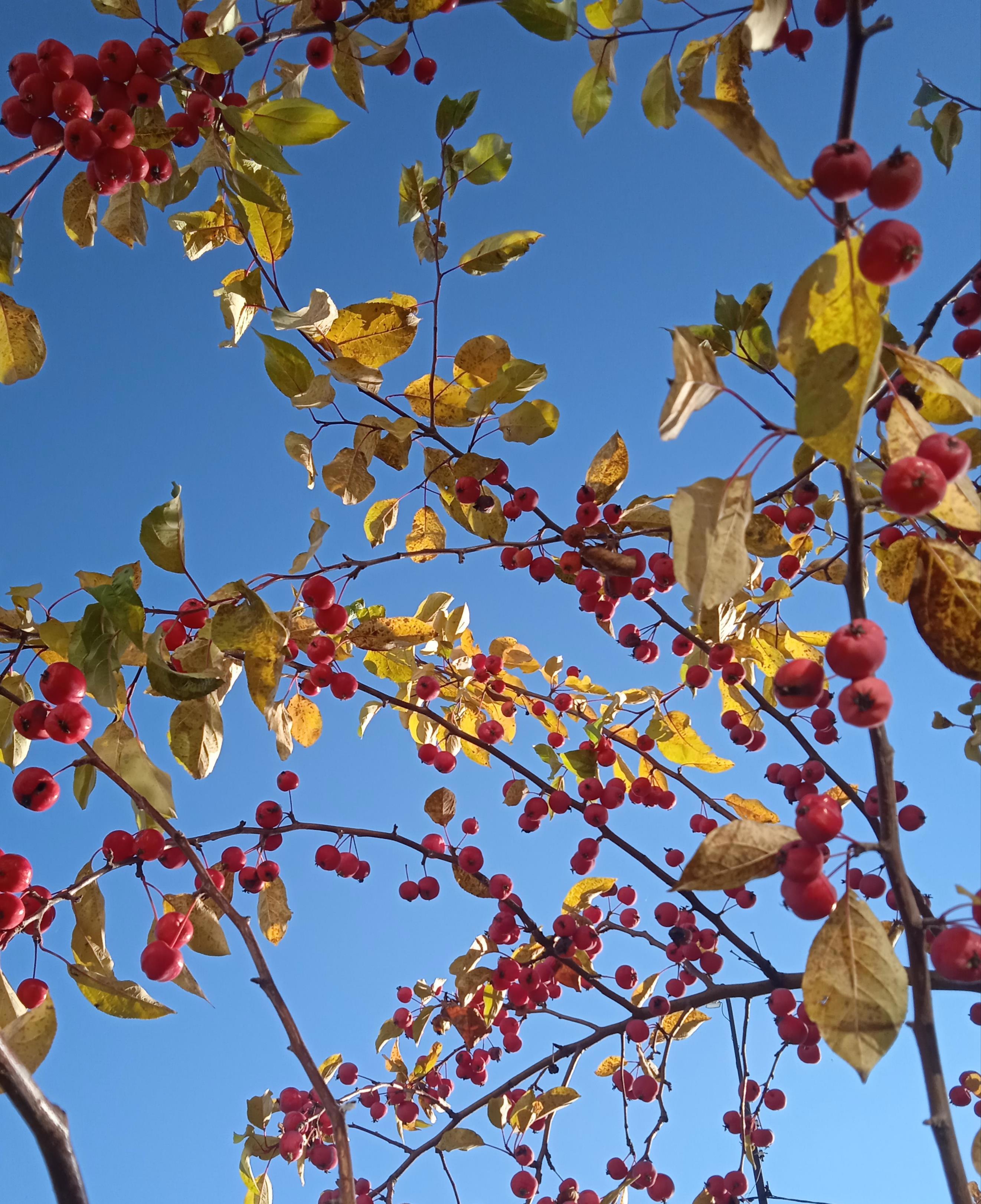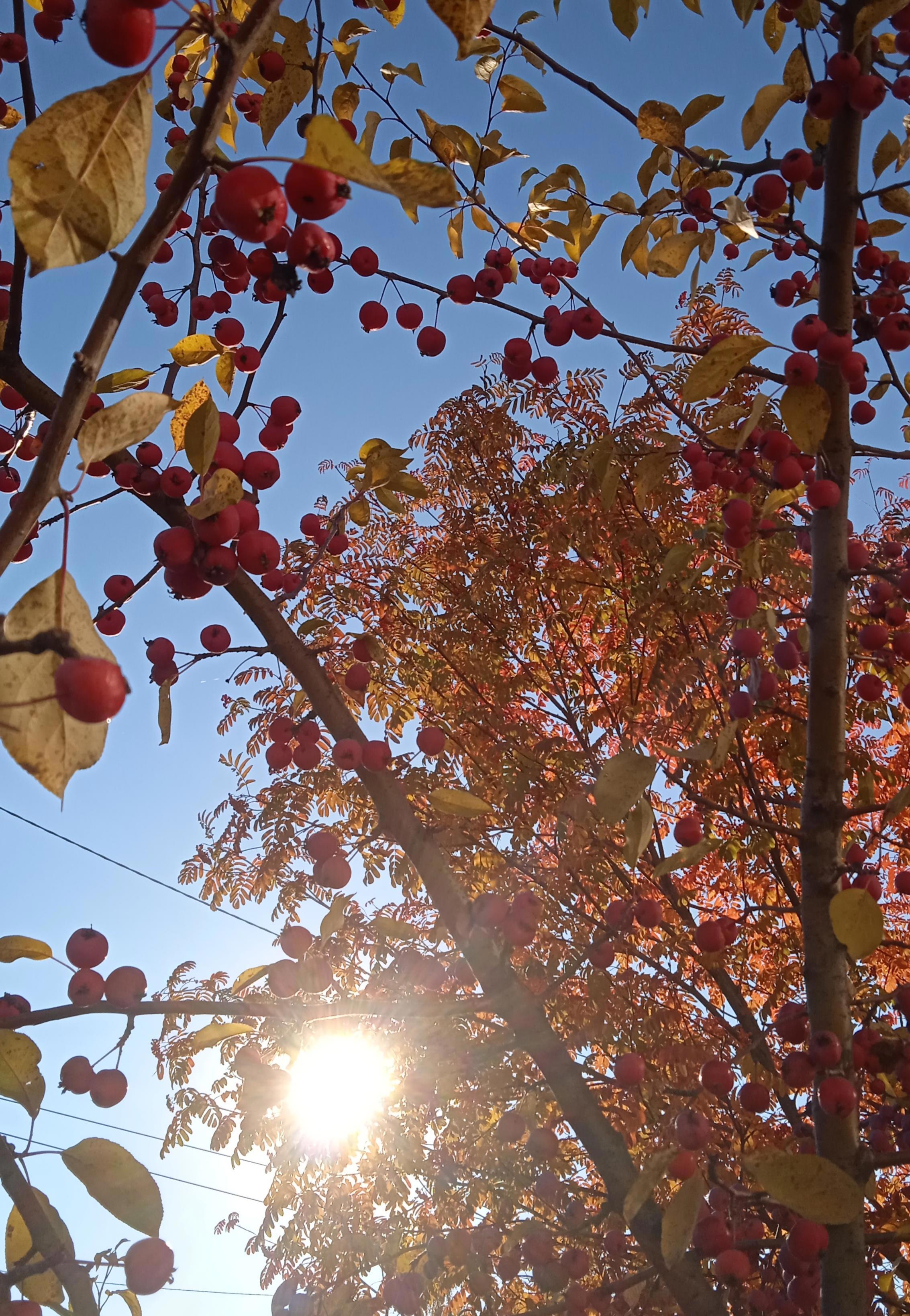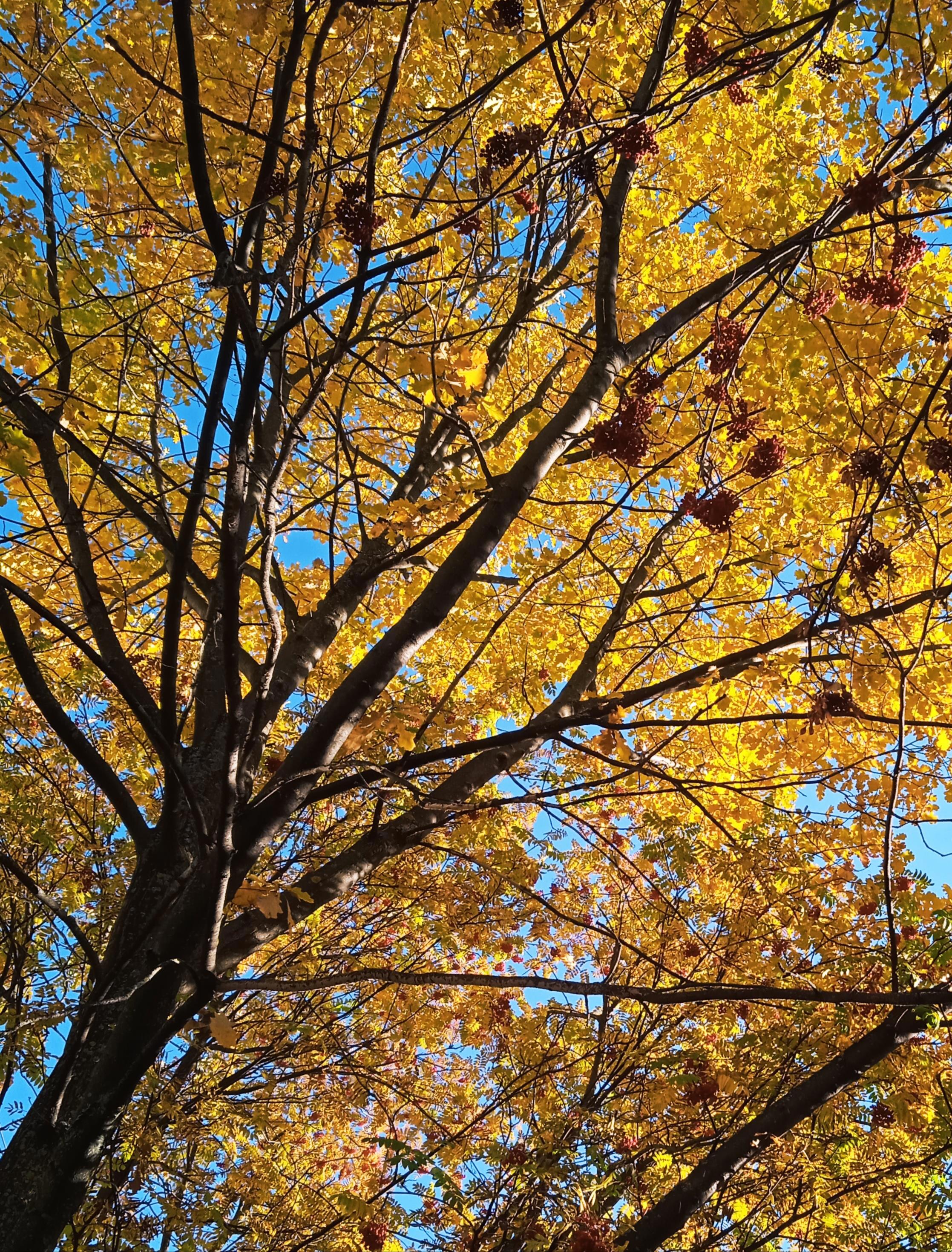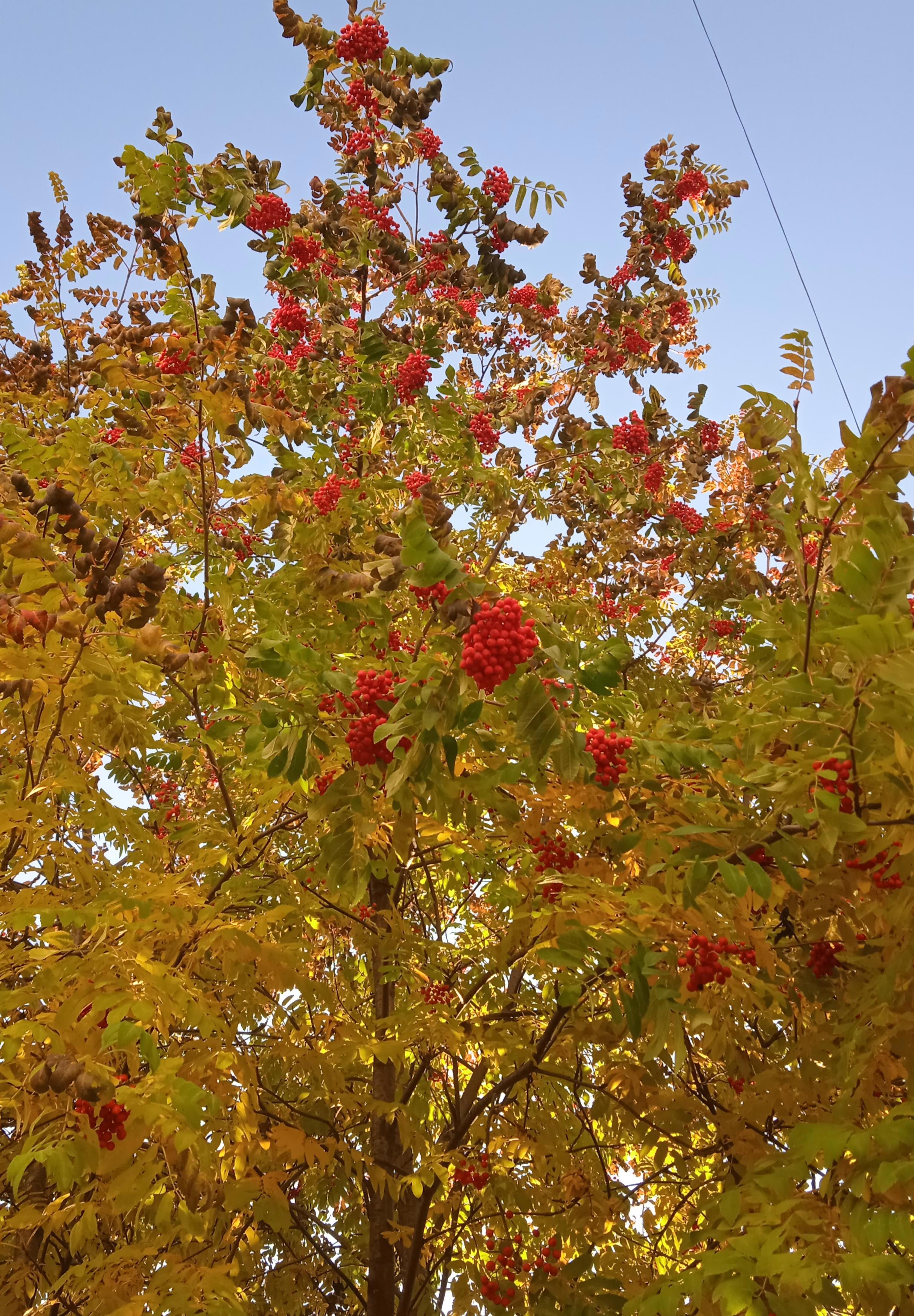 Но особенно много этой осенью рябины красной. Да и листва этого дерева радует разными оттенками: