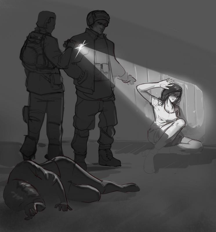 Луч фонарика скользнул по девушкам, задержавшись на их голых, исцарапанных, измазанных кровью ногах. Раздался одобрительный свист.