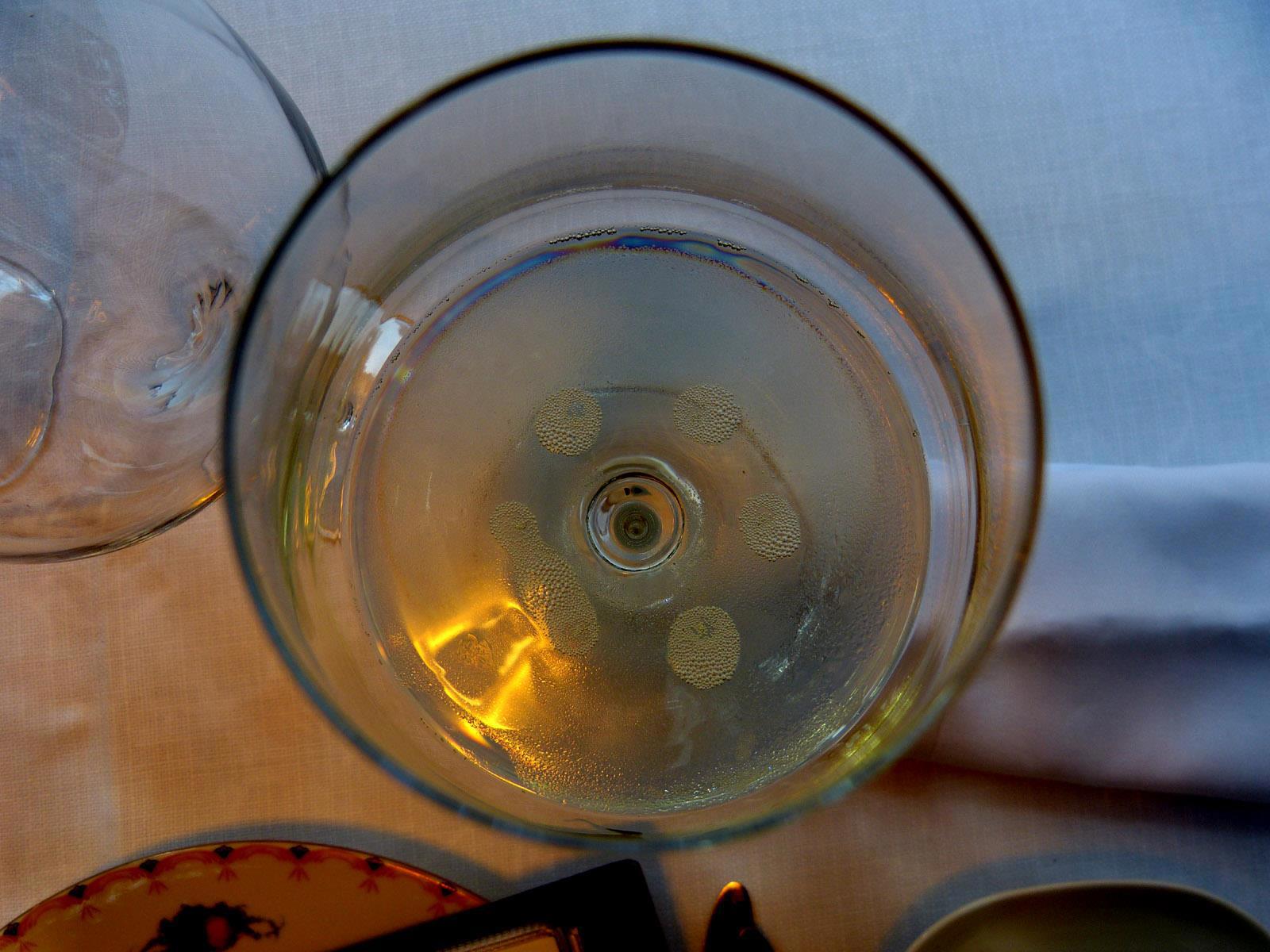 Автор: Д. В. АмурскийКак-то пили мы с Наткой игристое из Франчакорты. Сделав несколько глотков вина, вскоре заметили, что пузырьки газа расположились на редкость упорядоченно, приняв форму шестиугольника с центральной точкой: