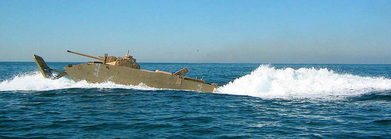 Реальная скорость у этих машин на плаву была порядка 10-12 км в час при довольно скромных, но вполне разумных остальных мореходных качествах. То есть вполне «на уровне» среди мировых аналогов, так сказать. Но ведь всегда хочется чего-то больше, всегда «маловато будет». Вот хорошо бы высадить десант подальше от берега – так хоть корабли не смогут обстреливать все, кому не лень. Да и десант по пути к берегу успел бы построиться во что-то типа боевого порядка. Получается, что десантная техника должна быть бронированная и стреляющая на ходу, в смысле на плаву. Хорошо. Однако остаётся ещё одна проблема – плыть далеко, а значит – долго. Вот была бы такая шайтан-арба, которая бы просто – вжик – и уже на берегу! Именно так поставили задачу американским инженерам американские военные с благословения гражданских членов властных структур в 1989 году.