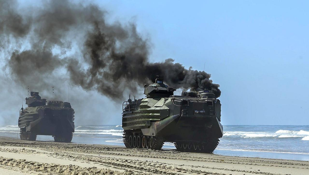 И вот, значит, плывут большие транспортники с десантниками, техникой, снабжением, боеприпасами и прочим. Что дальше? Дальше они подходят к берегу и начинают нести тяжёлые потери от огня противника. Потому как противник закопался в землю, а корабли гордо покачиваются на открытой водной глади. Большие корабли... то есть промазать по ним довольно трудно. А десанту ещё нужно выгрузится, рассредоточиться и только тогда всерьёз вступить в бой. До того момента он тоже большая нестройная мишень. Американцы, исходя из моих скудных познаний, в 90-х годах имели на вооружении в различных вариантах бронетранспортёры М113, которые разучились плавать ещё во времена Вьетнамского позора: