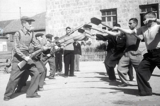 Занятие по рукопашному бою в СССР - штык против малой лопатки.