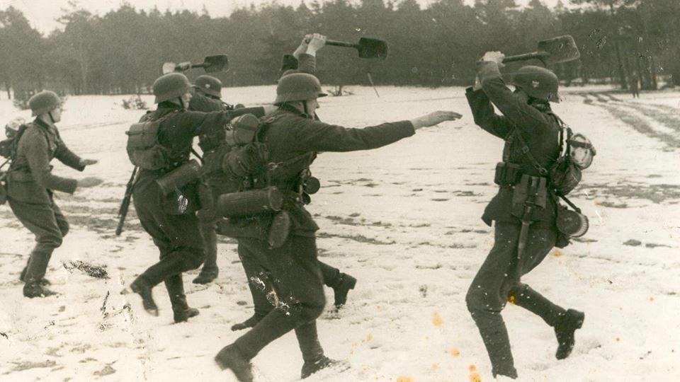 То же - в вермахте. Еще довоенном. тут правда голые руки против лопаты.