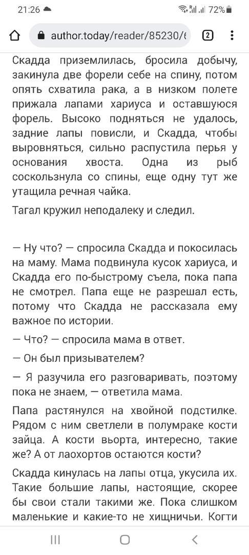 Например, как выглядит текст в читалке на АТ: все норм, адекватно разделенные сцены.