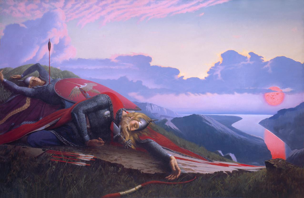 Поняв, что совершил, опомнившись, Дунай бросается на меч… и из его крови берет начало река.