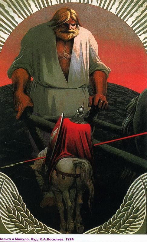 Самой огромной такой хтонической силой обладал Микула Селянинович, богатырь-пахарь. Это, собственно, всё, что он по сюжету делал – просто пахал поле. Ну и конечно порождал на свет очень сильных и мужественных дочерей. Однажды указал верную дорогу Вольге с дружиной. Но, что его соху, что его суму ни дружинники Вольги, ни сам великан Святогор не могут поднять. «Что в суме?» – спрашивает Святогор. Микула отвечает, что вся тяга земная. Понимайте как хотите задумку средневекового сказителя.